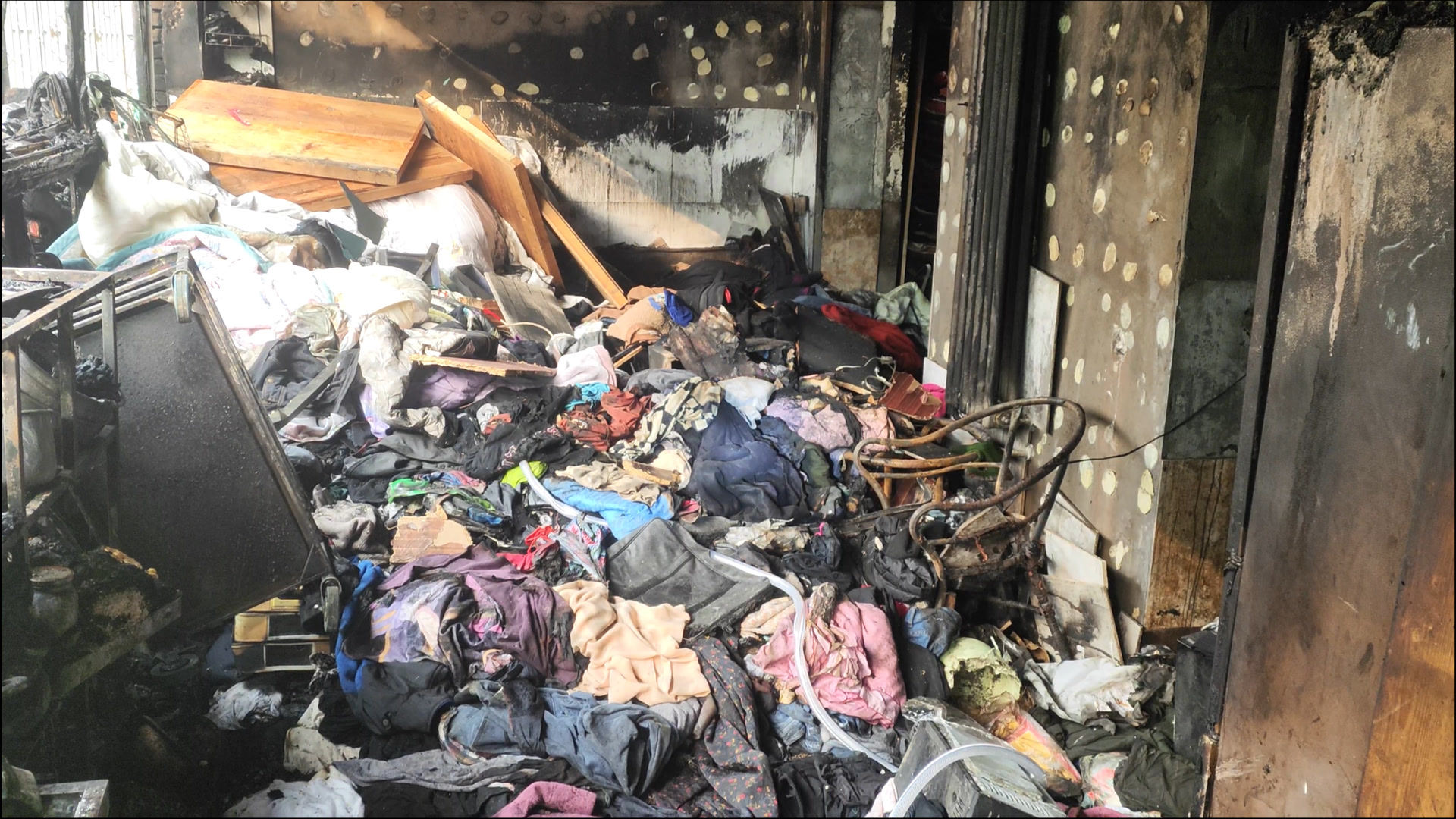 “因为南面的阳台入户门两侧堆放着大量杂物,当时已被火焰包围,我们打算从北面楼内的入户门打开救援通道,可这扇门早已被老人彻底封死,还堵上了洗衣机,家里的逃生出口都被断绝。”消防救援人员赵宇告诉记者,“不仅没有出口,老人家中只有一条宽80厘米左右的狭窄走道,起火后走道上堆放的杂物倒塌,进一步阻碍了老人逃生和我们的灭火救援行动。”