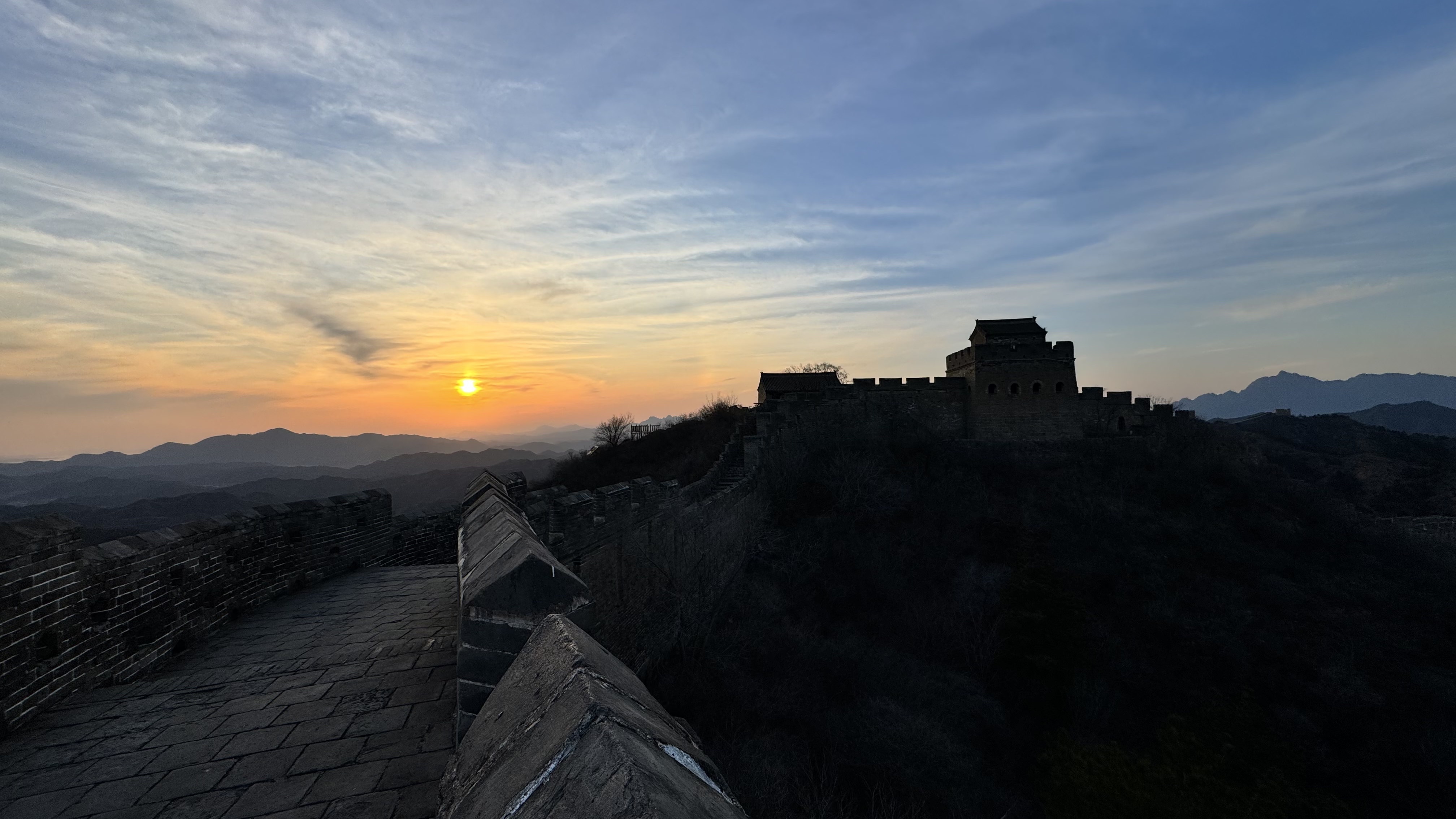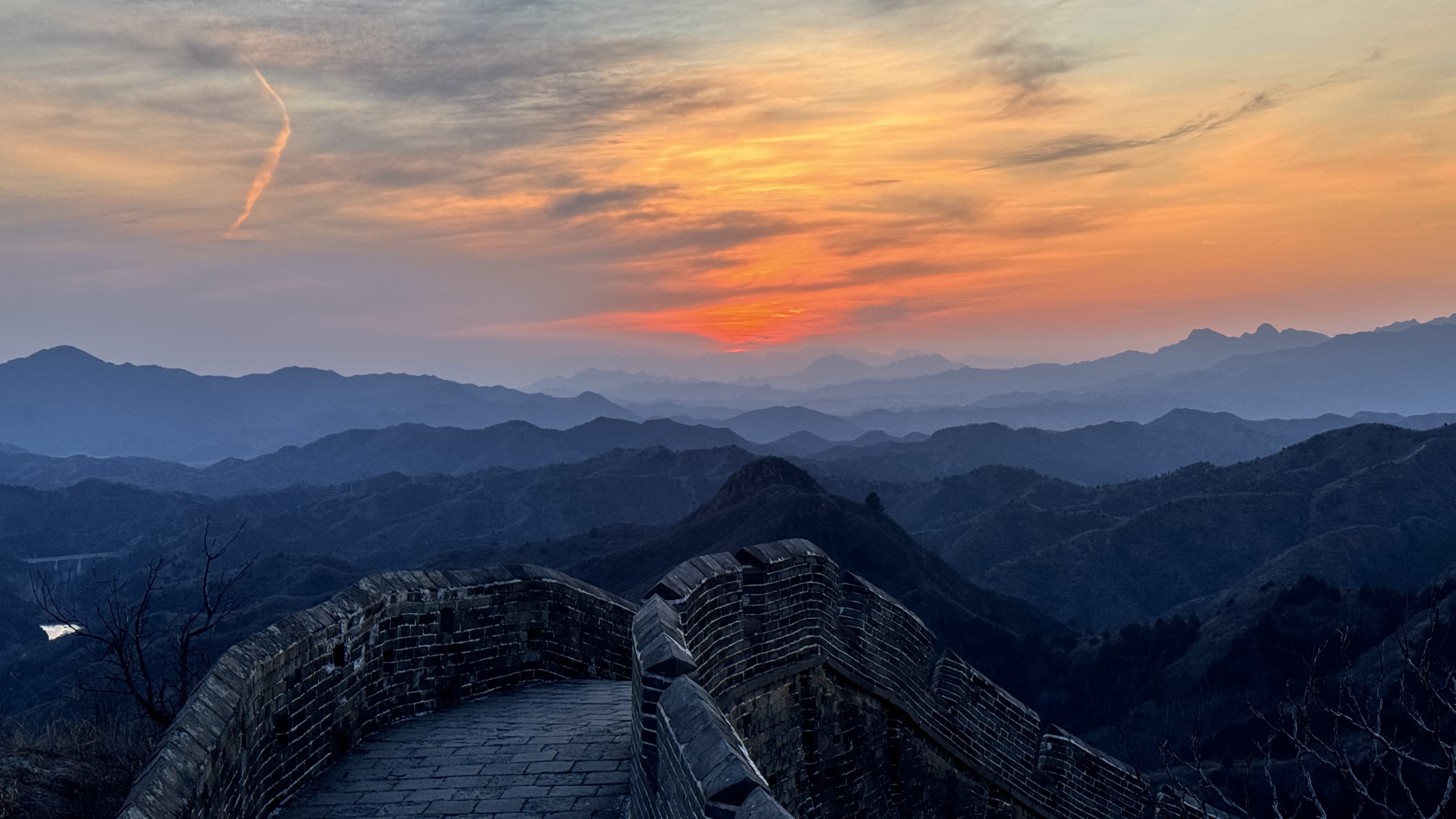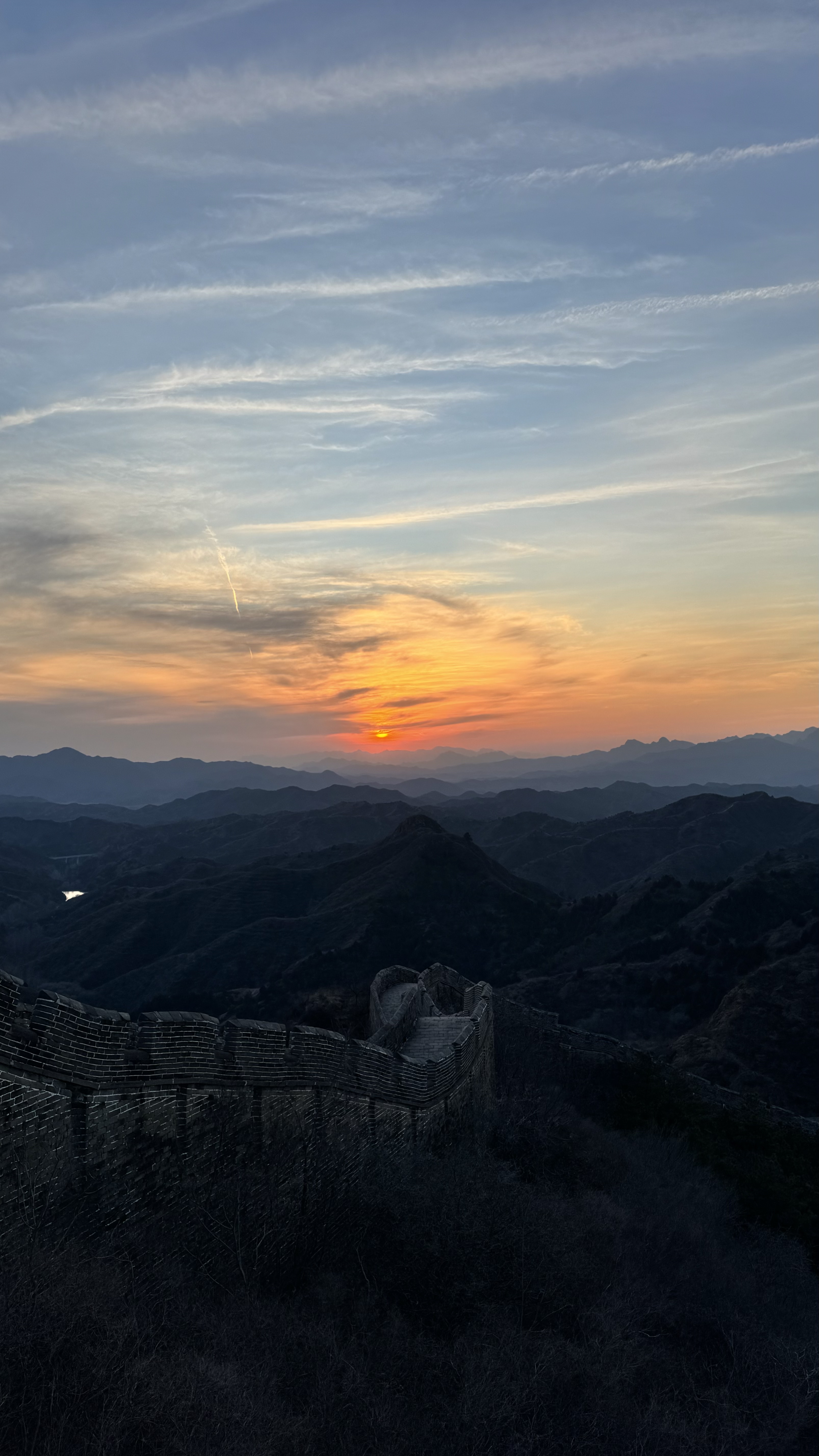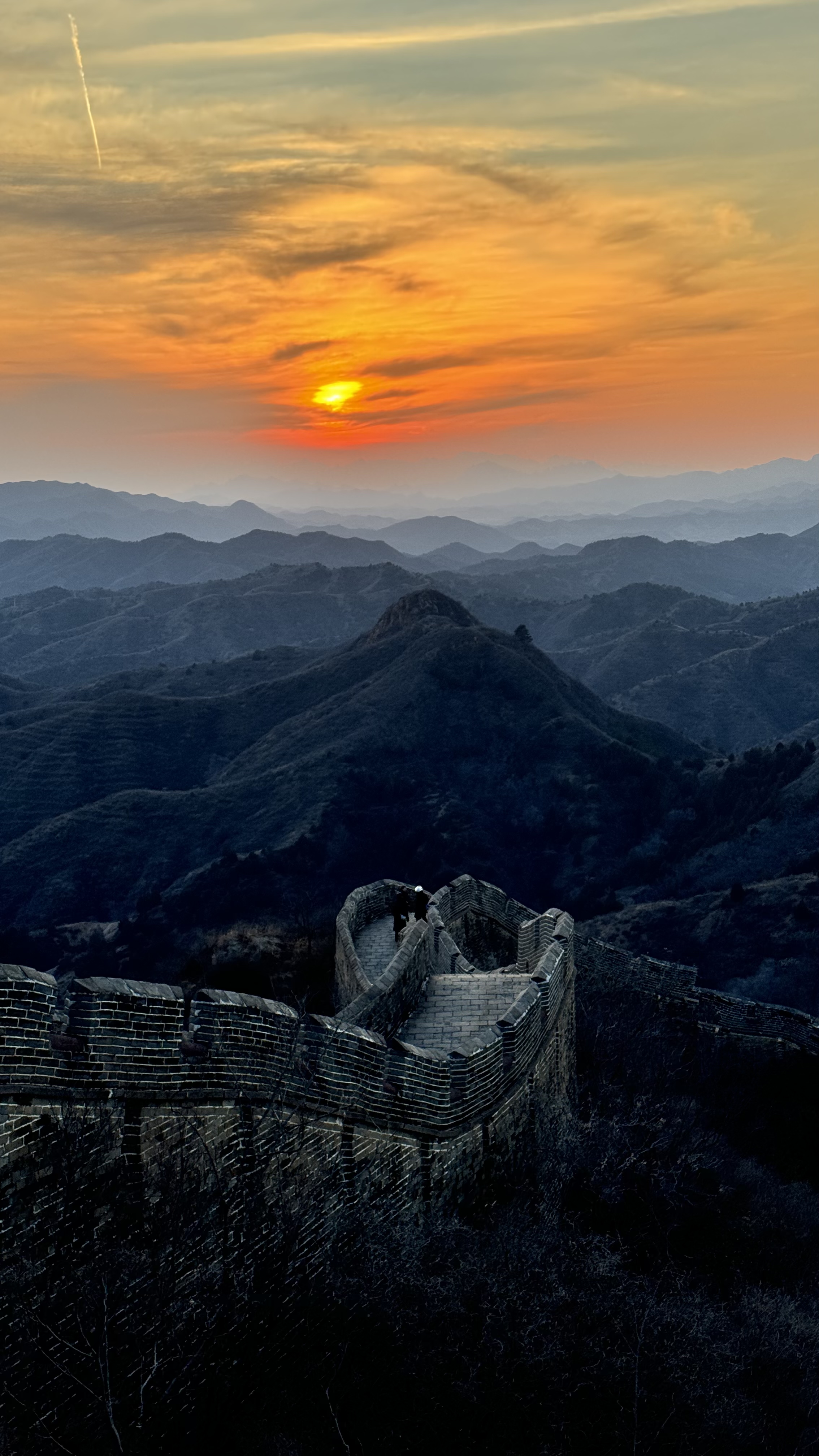 天清气朗,晚霞下的金山岭长城,美成油画