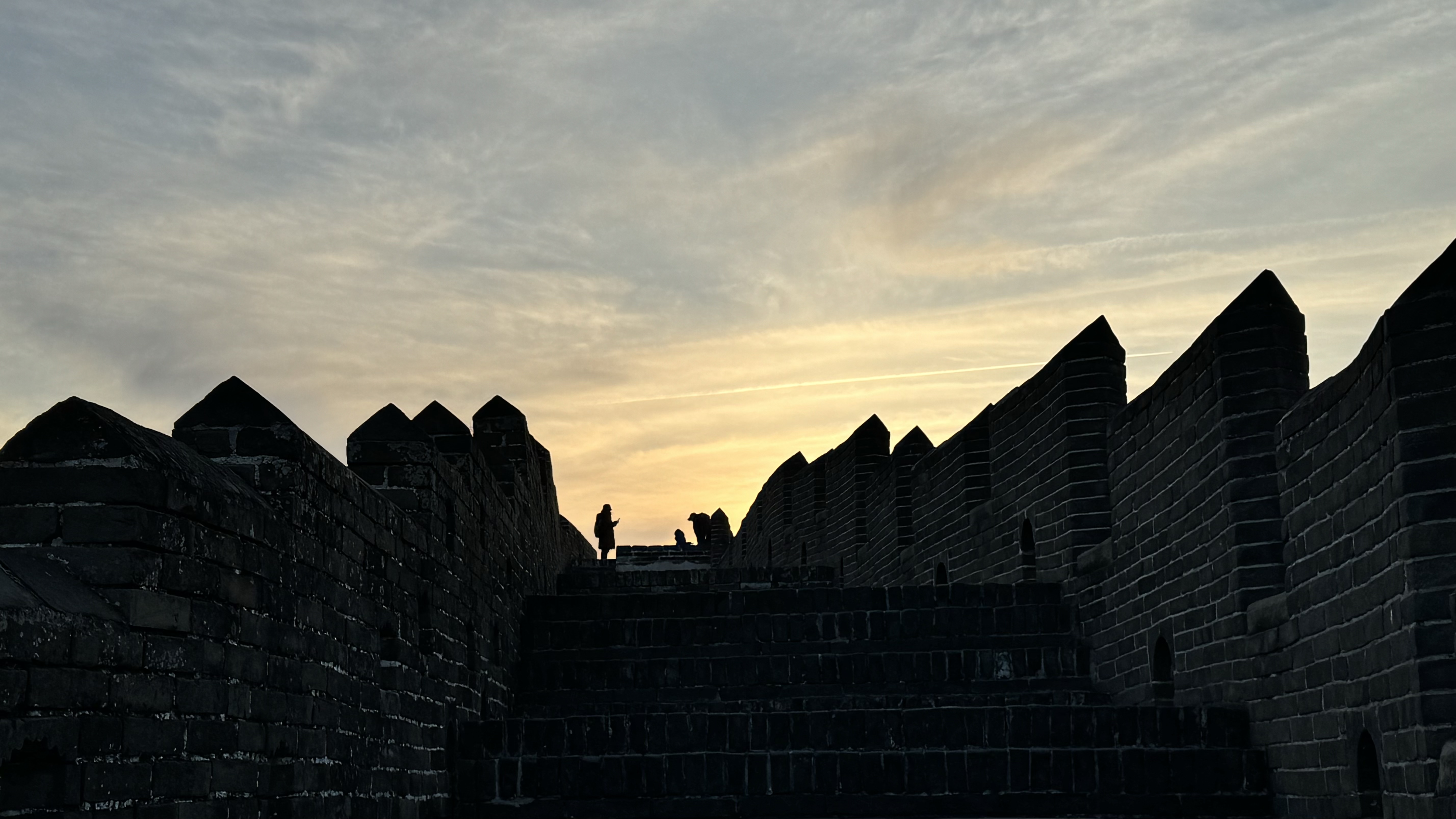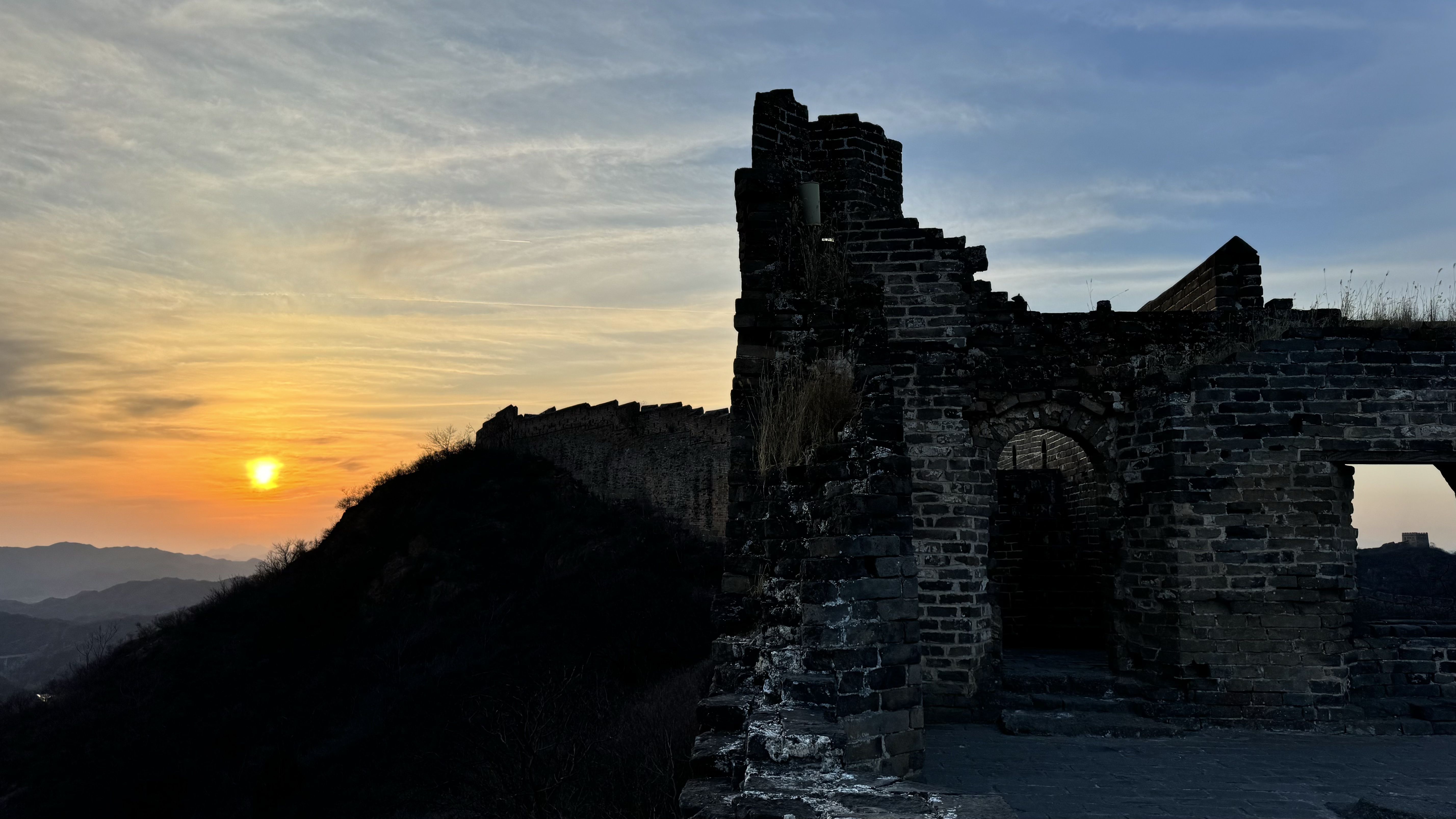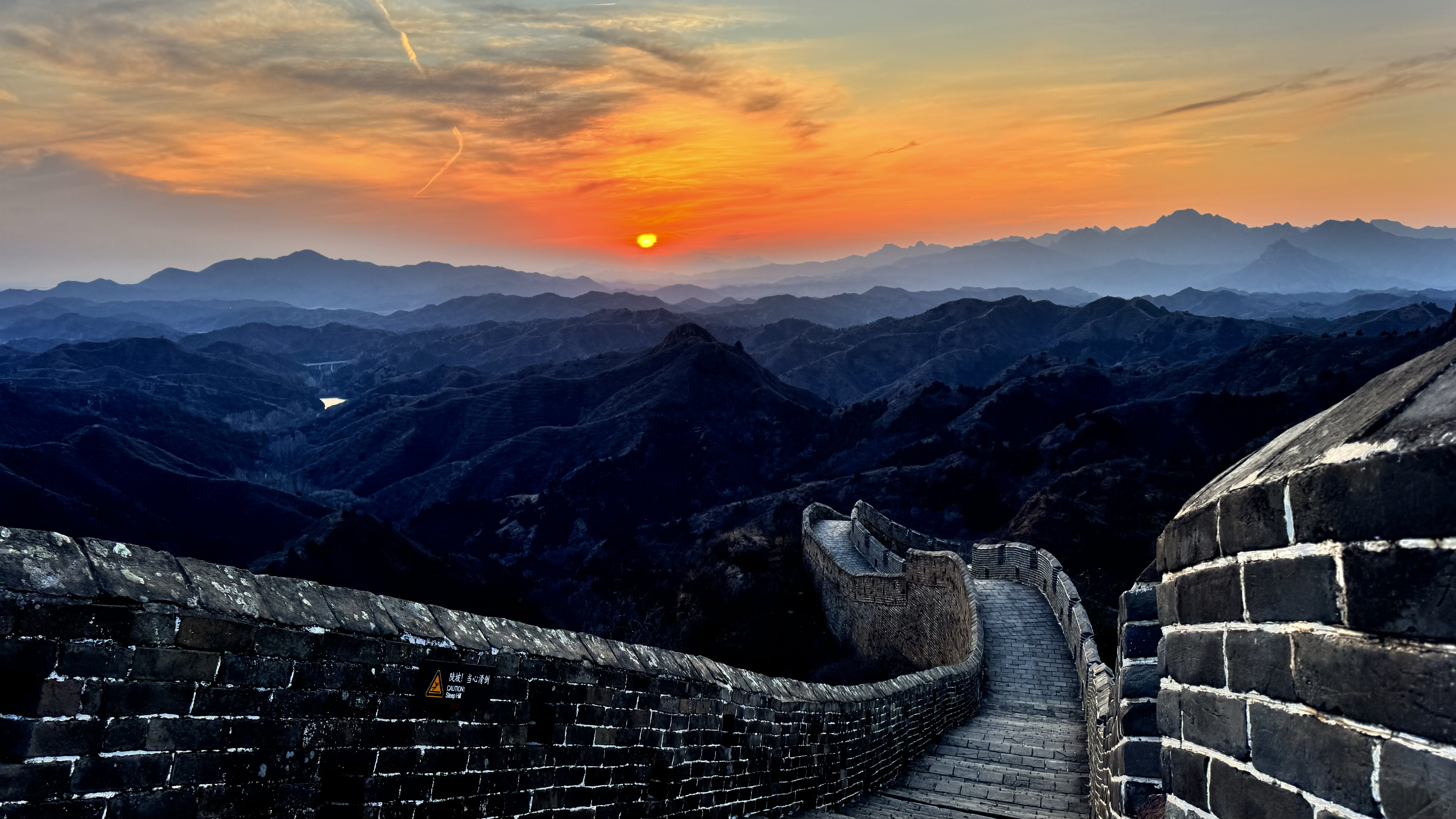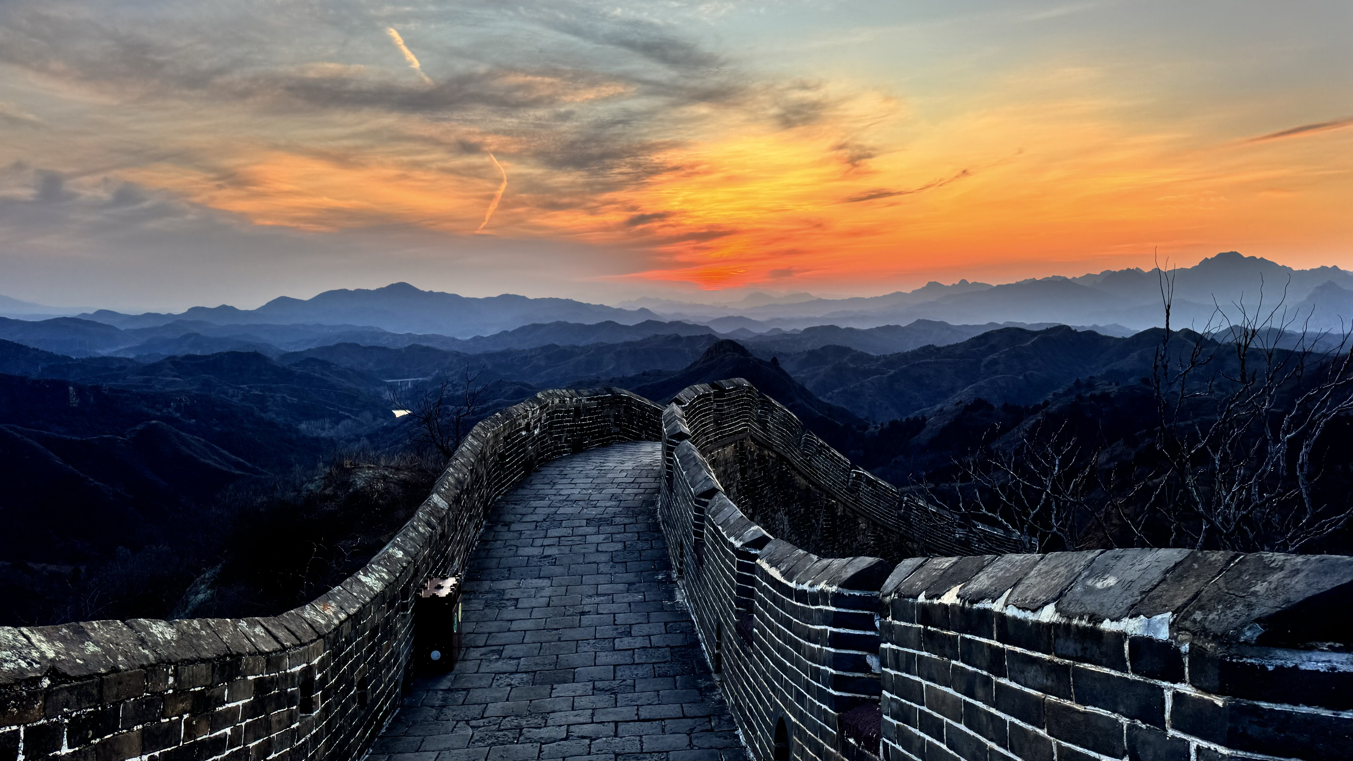 天清气朗,晚霞下的金山岭长城,美成油画