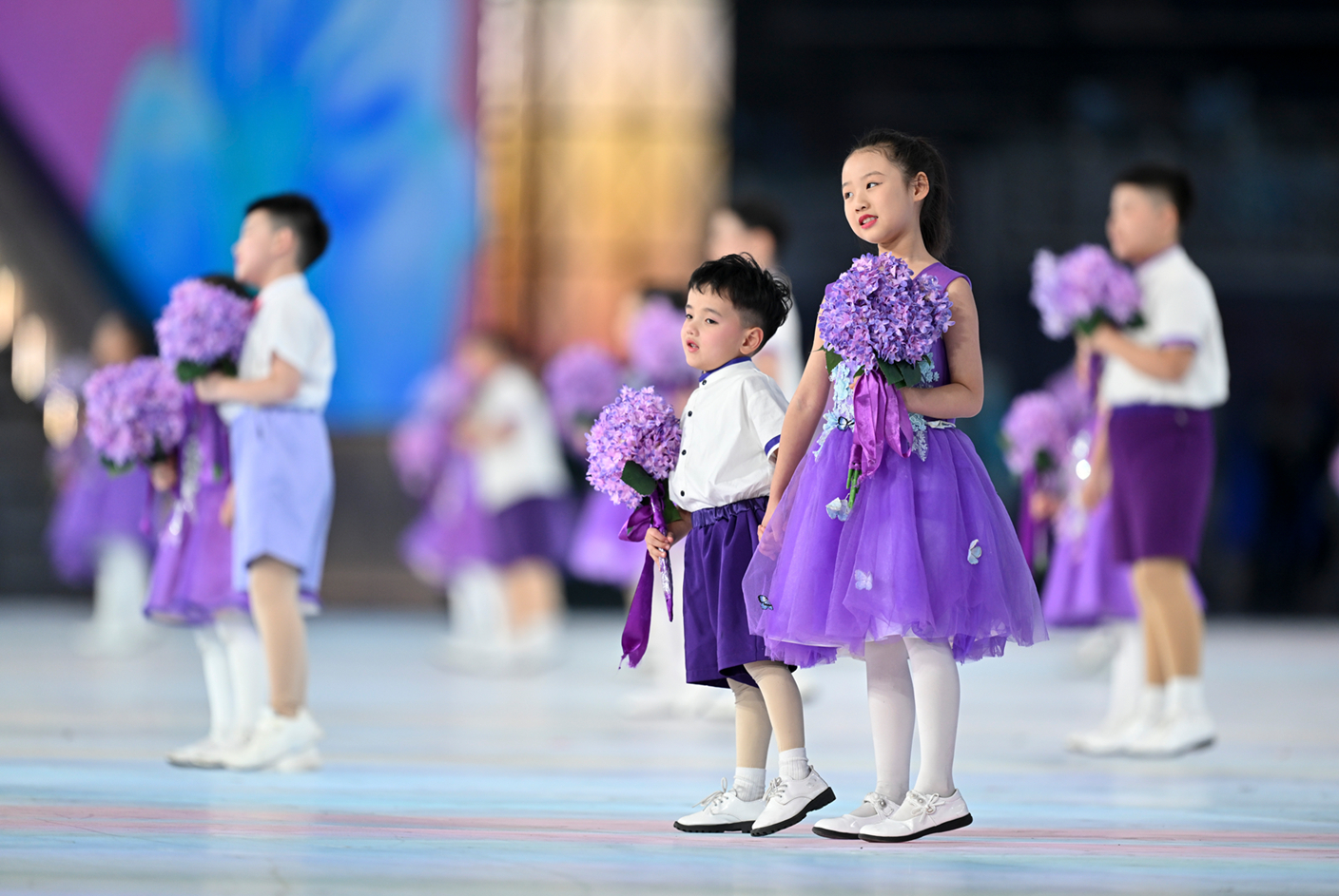 孩子们在进行闭幕式暖场表演。新华社记者江汉摄