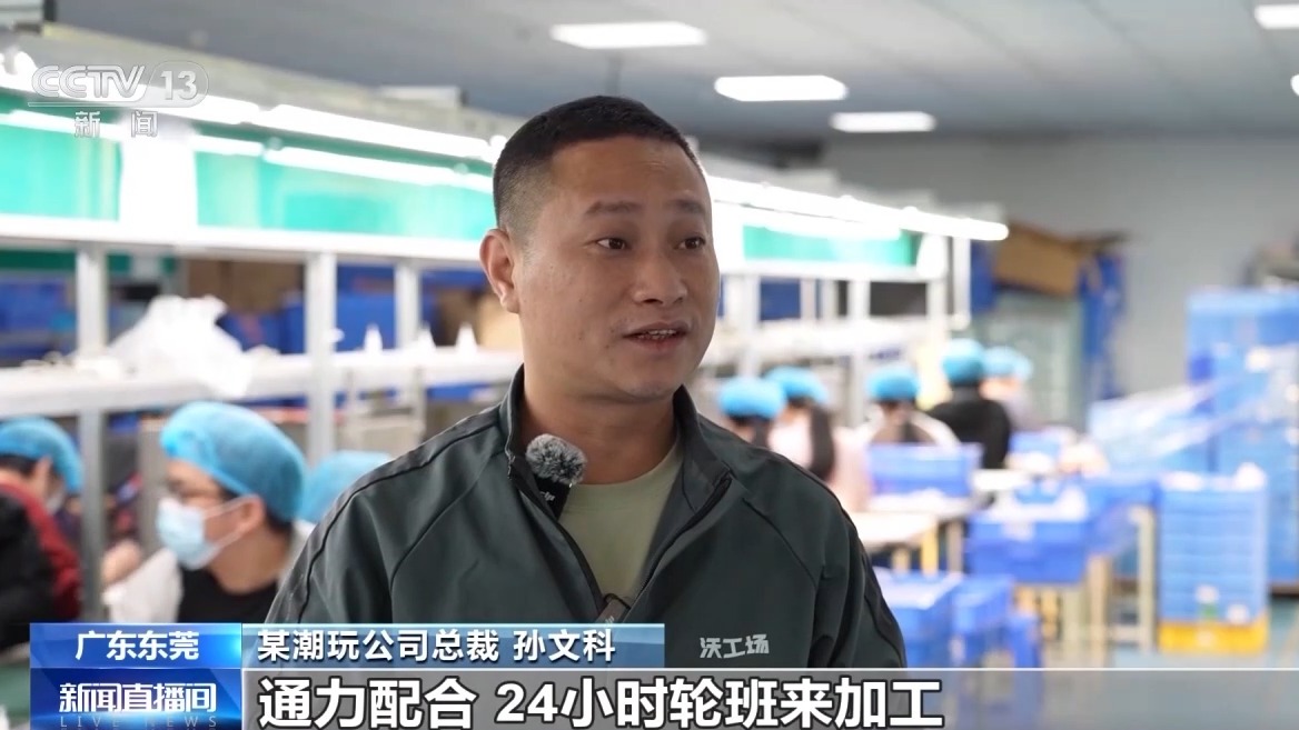某潮玩公司总裁 孙文科:已经召集了10多家模具厂通力配合,24小时轮班来加工,所以这个是靠我们东莞整体的制造配套的能力来做的,应该到这个月底就开始会有大量的产能出来。