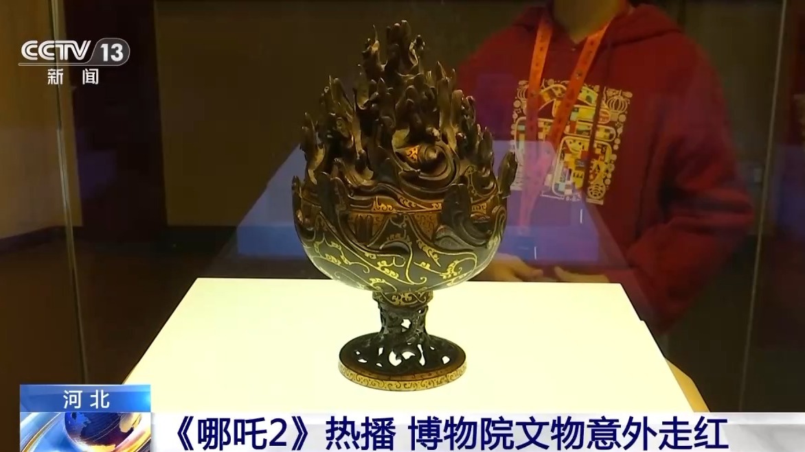 除了涂鸦墙、周边产品,《哪吒2》也让一些文物意外走红。比如河北博物院的镇馆之宝——错金铜博山炉。