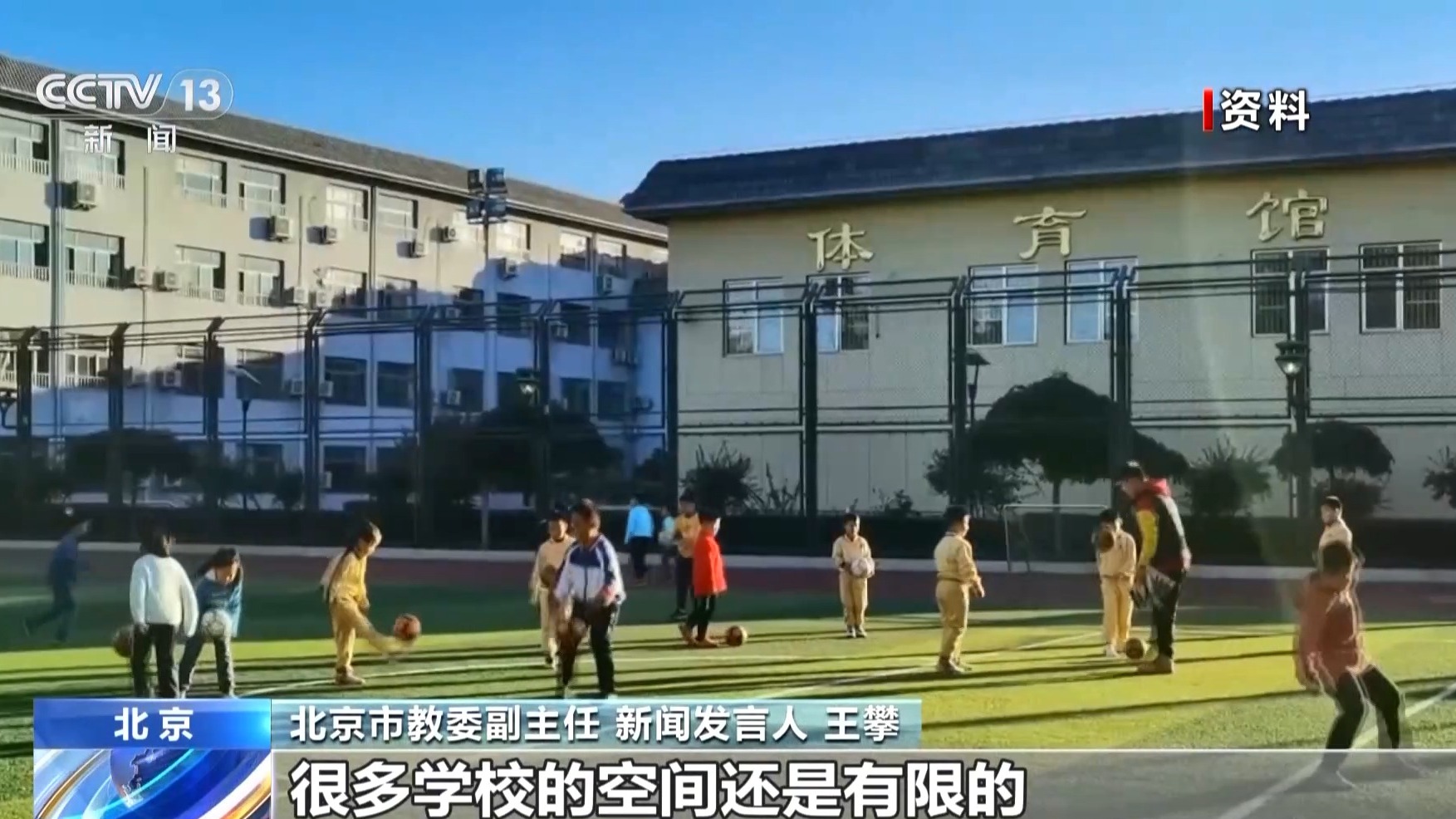 北京市教委副主任 新闻发言人 王攀:主要是难在空间的保障上,特别在核心区域,很多学校的空间还是有限的。因地制宜,我们要开发出小场地有负荷的运动,同时和周边的社区、体育场馆、公园,大家联动,共同参与到帮助孩子们体育锻炼,提升身心健康素养和水平的过程当中来。