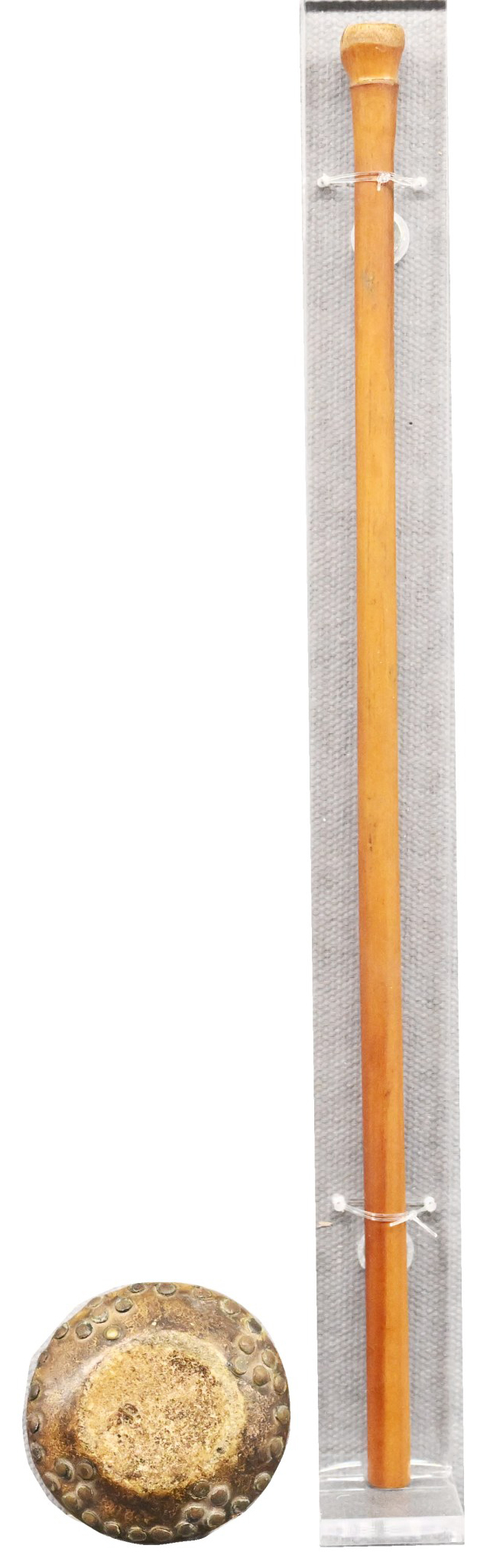 铜点儿旁边摆放的响器叫鼓儿,这不是常见的乐器鼓,而是要小上很多,小到比一元硬币大不了多少,它和紧挨着的铜棍是一个组合。吴黎浪介绍,这其实就是大家熟知的收文玩旧货等物品的“打鼓儿的”,盛行于晚清与民国时期。有些人家道中落,难以为继,只能变卖家中物件儿。“这些人还是要面子的,所以走街串巷收货的只敲不吆喝。有主顾听到,就会将他们叫进家中。”吴黎浪说。