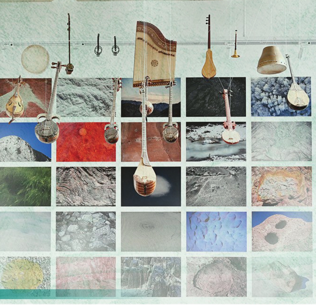 另一个展厅内,天花板上悬挂着新疆的传统民族乐器,有达甫、冬不拉、萨帕依、卡龙琴、热瓦普等,刚刚听到的和田音乐正是由它们演奏出的。乐器下方则是一个方形坐榻,铺着独具特色的和田图案地毯。“上面是乐器展示空间,下面盘腿一坐,正好是一方音乐舞台。”吴黎浪说,“之所以选择新疆声音展示,因为这里是一个民族大融合的地区,古丝绸之路上不同民族的交流留下了丰富的语言和音乐,我们希望展示给大家更多元的声音与文化体验。”