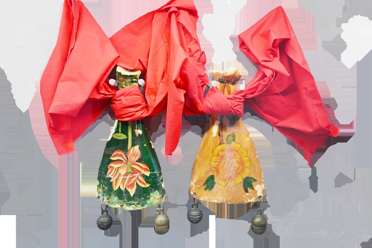 鸽哨声、驼铃声、敲锣声……这些老北京的声音是如何发出的?展厅中摆放的响器道尽其中奥秘。一件由特殊的锣和槌组成的响器吸引了记者的注意。“这叫铜点儿,是昔日北京盲卜算卦所用。因为盲人的另一只手需持盲杖,所以这种响器的特点是锣与槌用同一只手来操作。将槌夹在中指与无名指之间,伴随着两根手指上下摆动,让槌与锣相撞,从而发出声音,吸引人们注意。”吴黎浪说,当时正常视力的算命先生则用另一种响器,卜卦者一听,就能区分出两类算命先生。