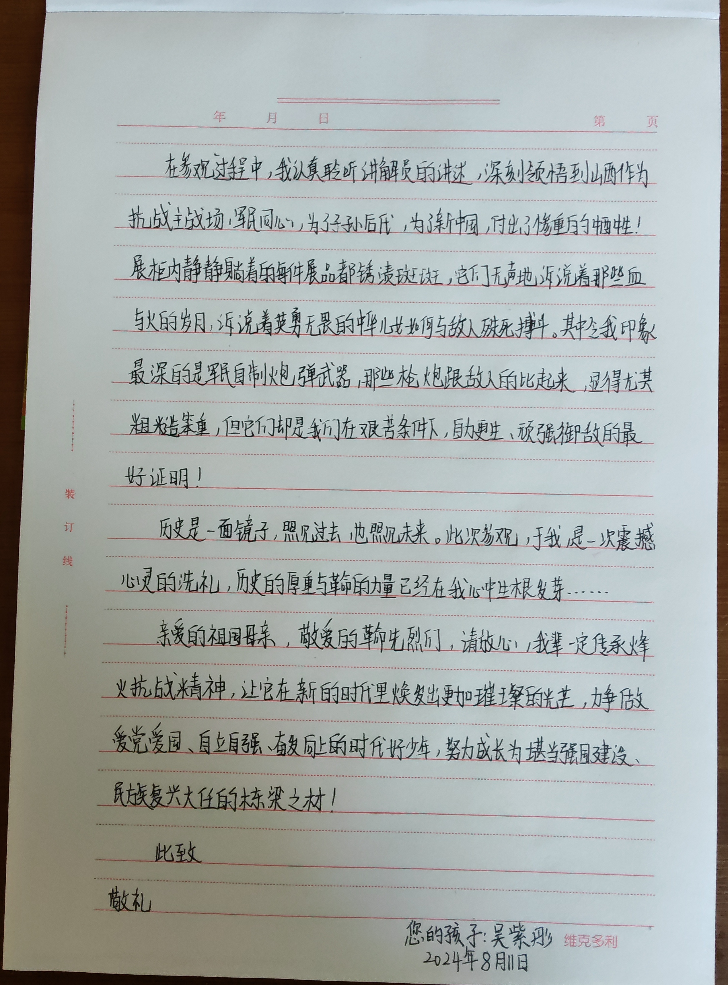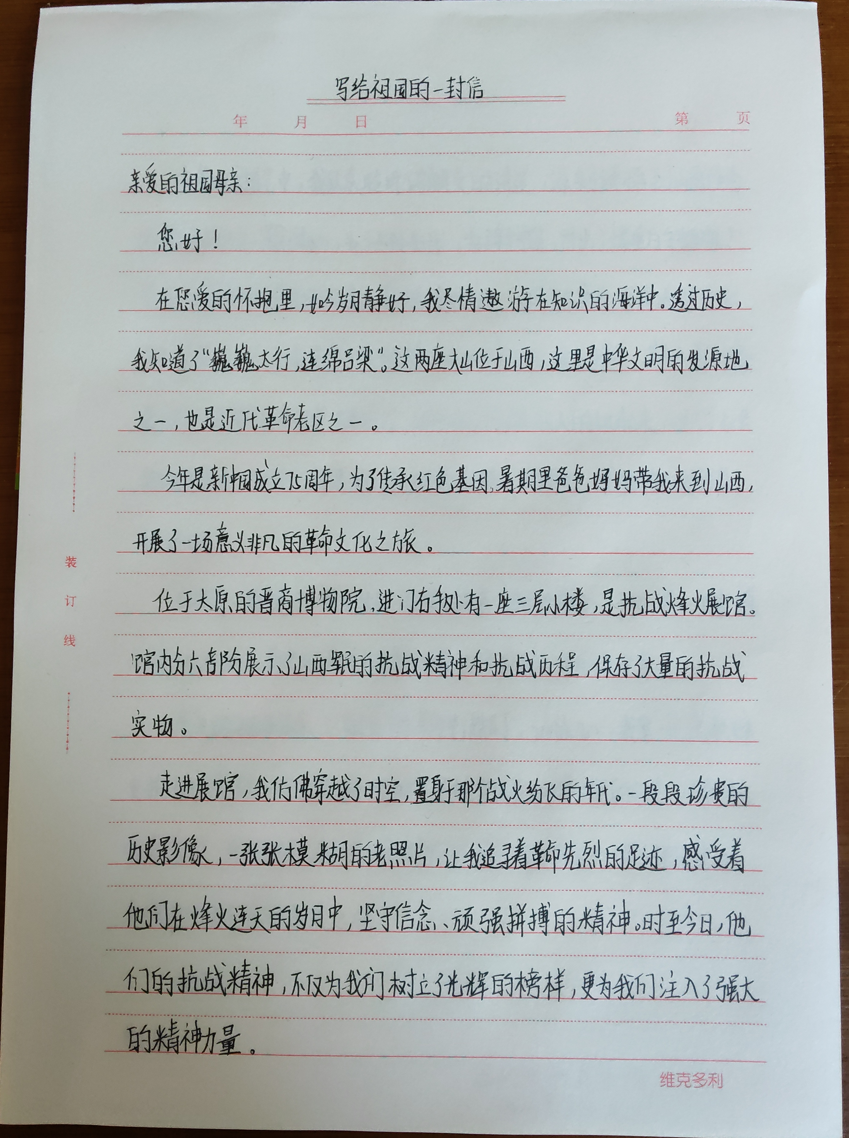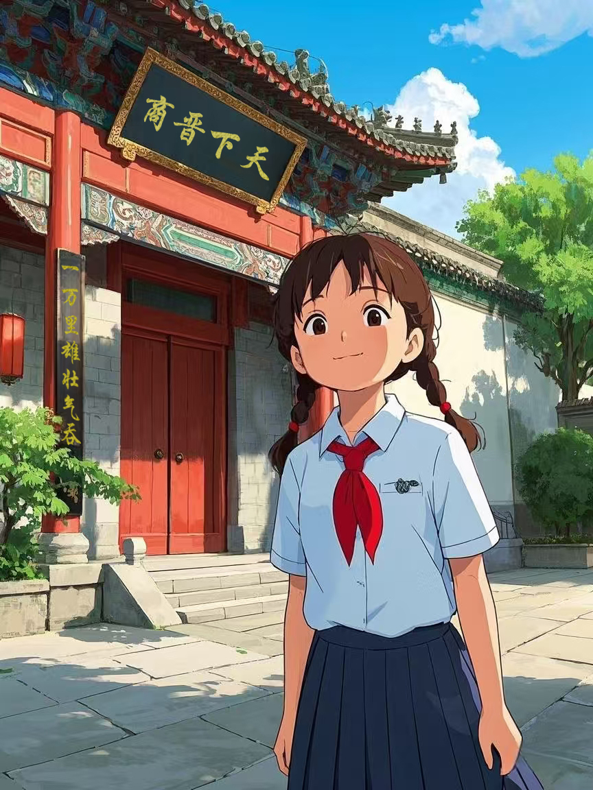 今天这幅AI绘画作品的原型来自北京市通州区第二中学八年级(6)班吴紫彤的书信作品《写给祖国的一封信》。
