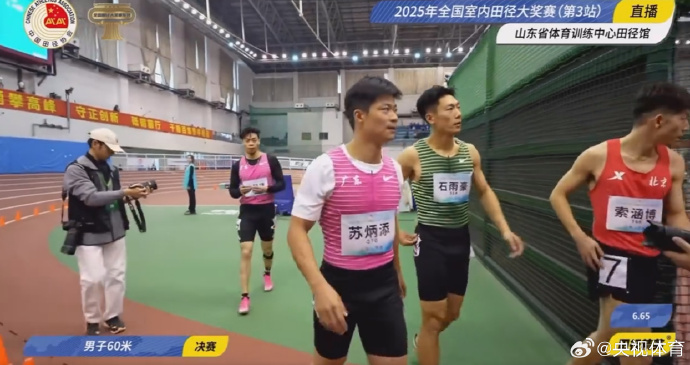 2025年全国室内田径大奖赛(第3站)济南站,男子60米比赛,阔别赛场一段时间的苏炳添迎来新赛季首秀,他第19组出发跑出6秒65夺冠。