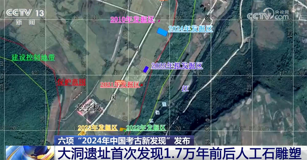 六项重大考古新发现中,有三项聚焦石器时代。其中,吉林和龙市大洞遗址是目前东北亚地区规模最大的旧石器时代晚期旷野遗址。2021—2024年,吉林省文物考古研究所联合多家单位对该遗址开展了主动性考古发掘。在距今1.7—1.5万年的地层中,考古队发现了带有“V”字形的刻划石制品,借助超景深显微镜等设备观测研究后,初步判断这件石制品应为人工的石质雕塑。