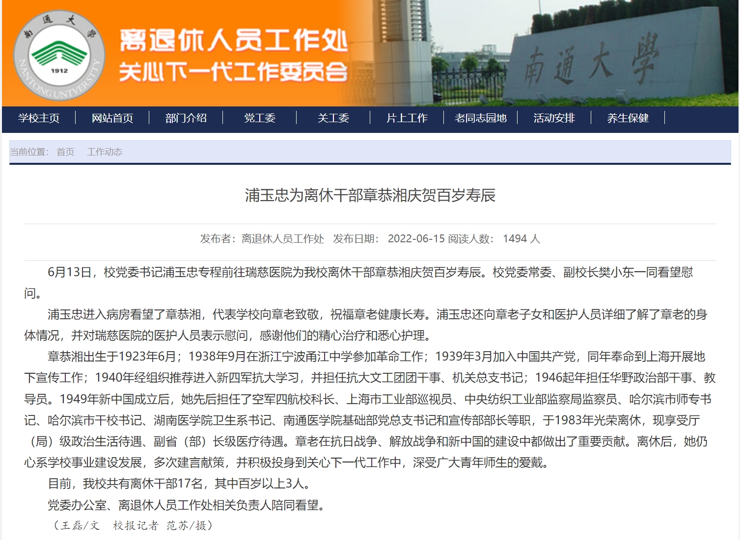 资料来源:南通日报、南通大学离退休人员工作处网站