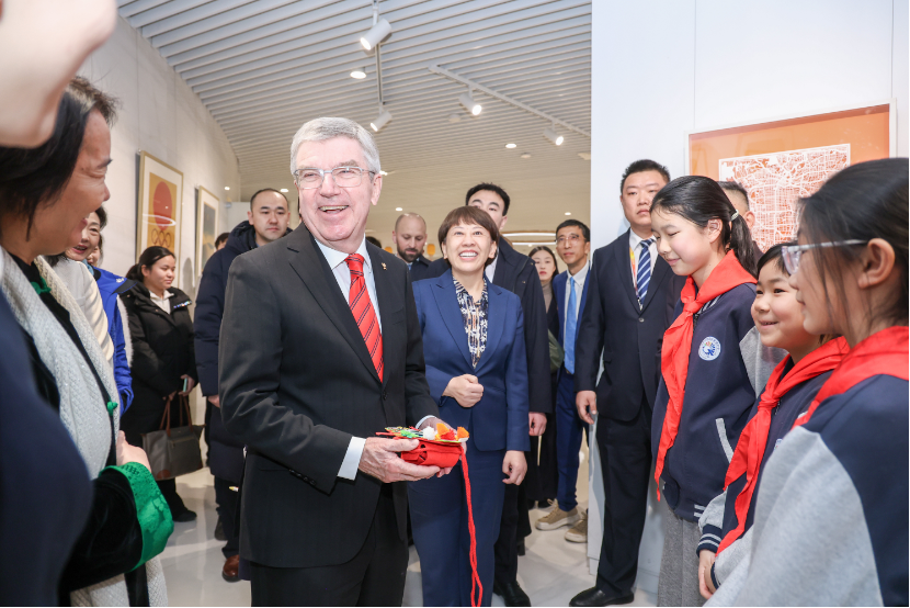 2月20日,国际奥委会主席巴赫一行参观北京奥运博物馆。北京市副市长、北京奥促会会长司马红,市政协党组成员、北京奥促会常务副会长韩子荣陪同参观。