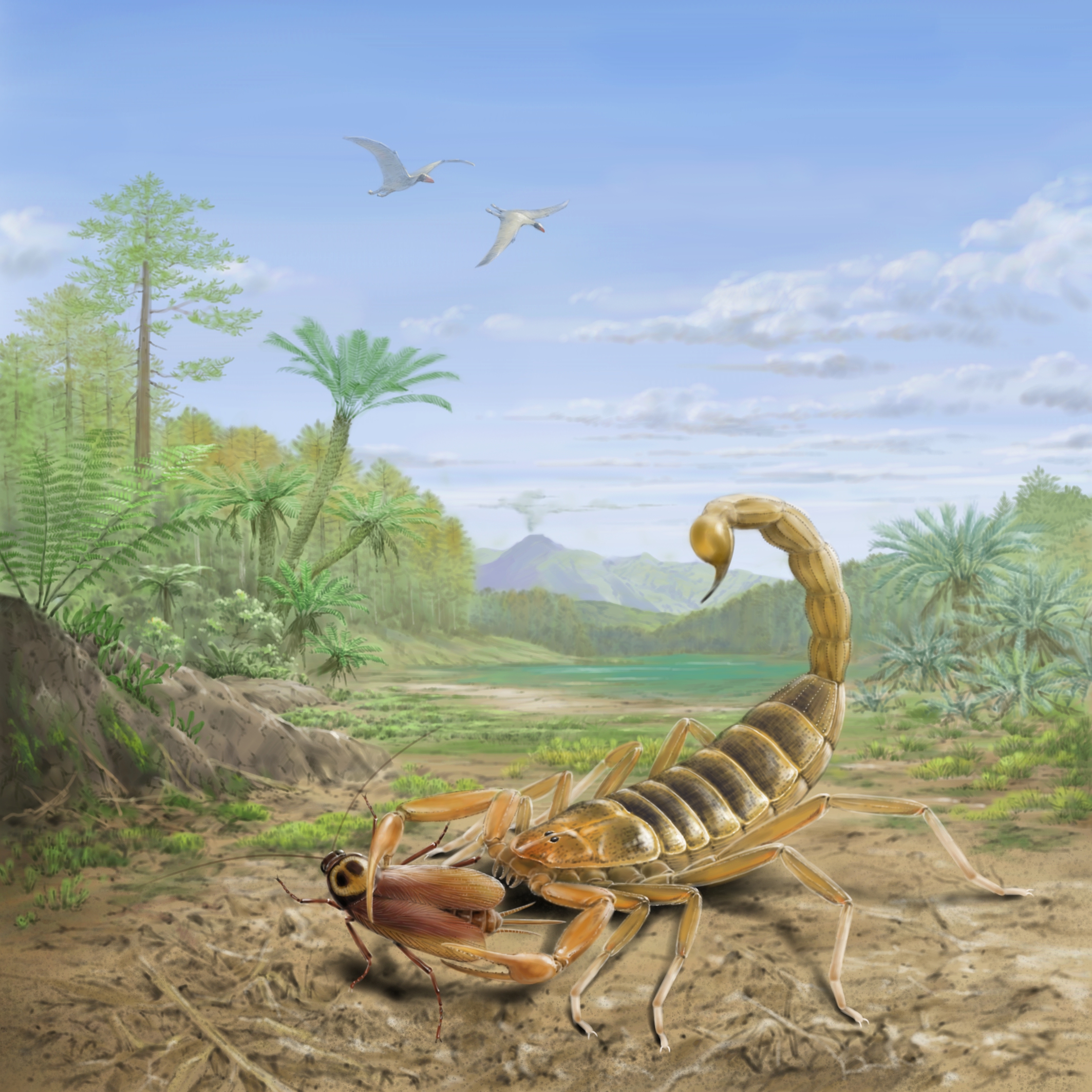 龙城热河蝎生活在约1.25亿年前的白垩纪早期,它得名于化石的发现地——辽宁省朝阳市龙城区。这里发现了著名的热河生物群,其中保存了大量精美的化石,包括带羽毛的恐龙、早期鸟类、哺乳动物、昆虫和植物等。这些化石仿佛一本远古生物百科全书,热河生物群也被誉为“20世纪全球最重要的古生物发现之一”。