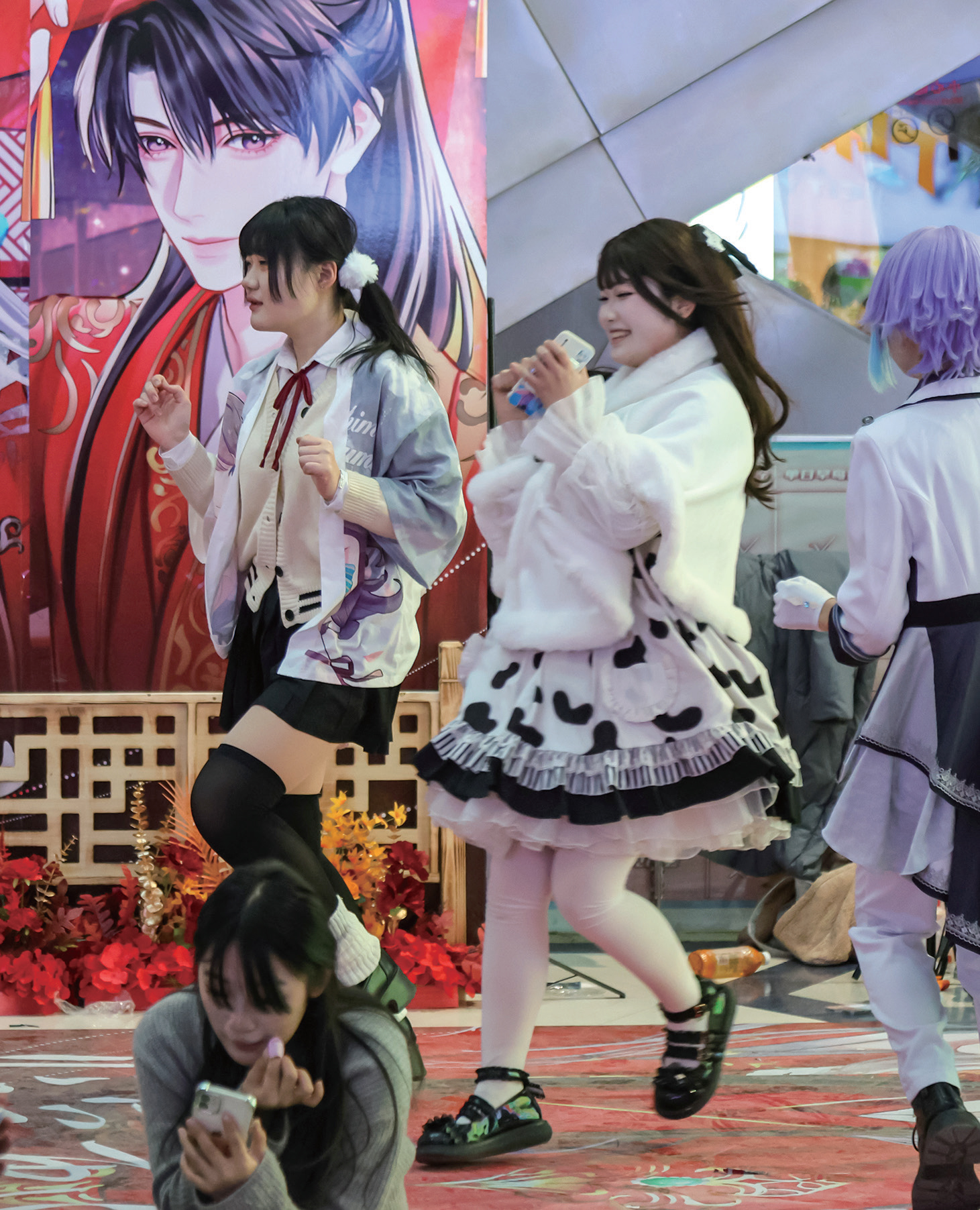 2025年2月7日,河南郑州,“随机舞蹈”在大上海城商场中厅舞台上演,不少二次元爱好者大方展示自己