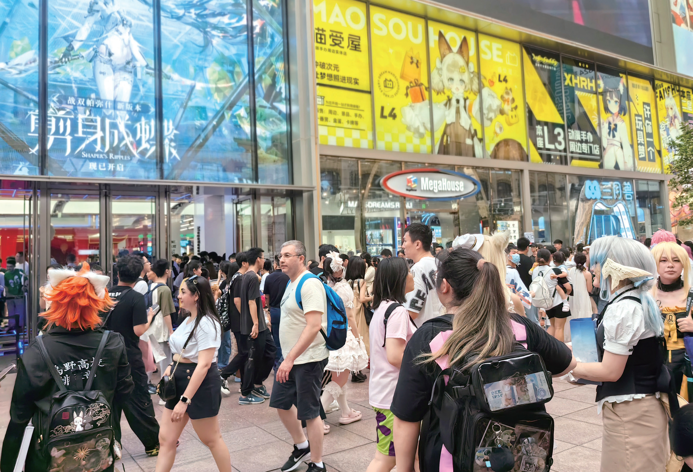 2024年7月13日,上海,南京路的新世界城和百联ZX创趣场门口都迎来了大批的二次元粉丝