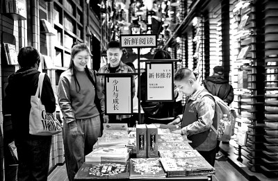 家长带孩子在天津一书店阅读挑选书籍。新华社发