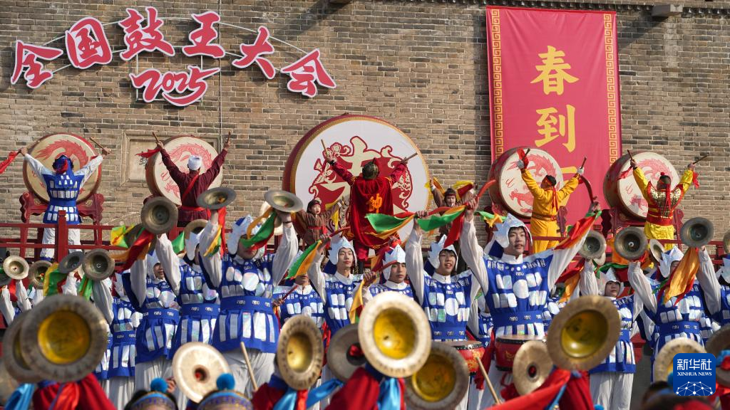 当日,“春到万家”——2025年全国鼓王大会在河北省石家庄市正定古城举办。来自全国10个省市的14支锣鼓队伍同台炫技,为观众带来一场跨越南北的鼓艺视听盛宴。