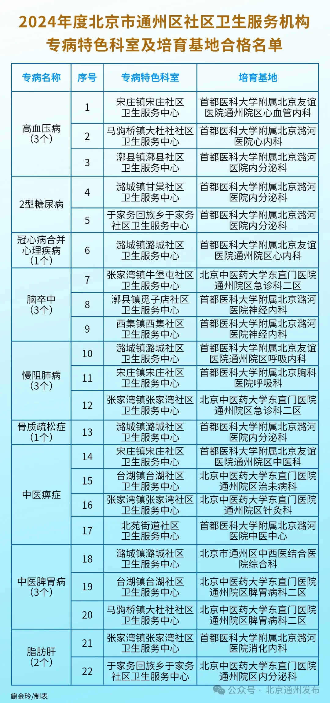 其中通州区有22个,具体名单见下表↓↓