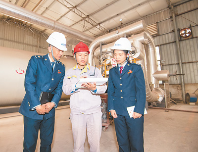 为优化营商环境,国家税务总局南宁经济技术开发区税务局为科创型中小企业送政策、送服务、促发展,持续深化“政策找人”,为辖区内企业提供“一企一策”服务,助力企业健康成长。图为近日,税务部门服务队队员在广西森合高新科技股份有限公司了解企业产品出口及惠企政策落实情况。周莉程 摄(人民视觉)