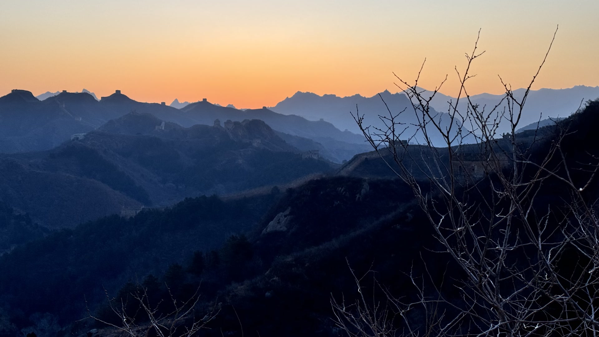 2月25日清晨,河北省承德市滦平县金山岭长城,晨光映照,长城、山峦相互交融,犹如水墨画一般细腻美丽。
