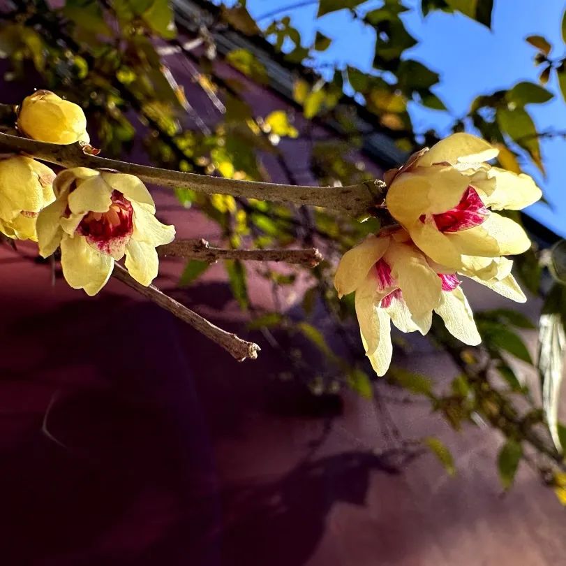 一阵阵清新而淡雅的香气是蜡梅的芬芳,它不像其他春花那样浓烈张扬,自有一种温婉而含蓄的魅力。一株株蜡梅树错落有致地分布在林间,枝头挂满了密密麻麻的花朵。这些花朵小巧而精致,花瓣晶莹剔透,宛如冰雪雕琢而成,又像是点点繁星点缀在枝头。