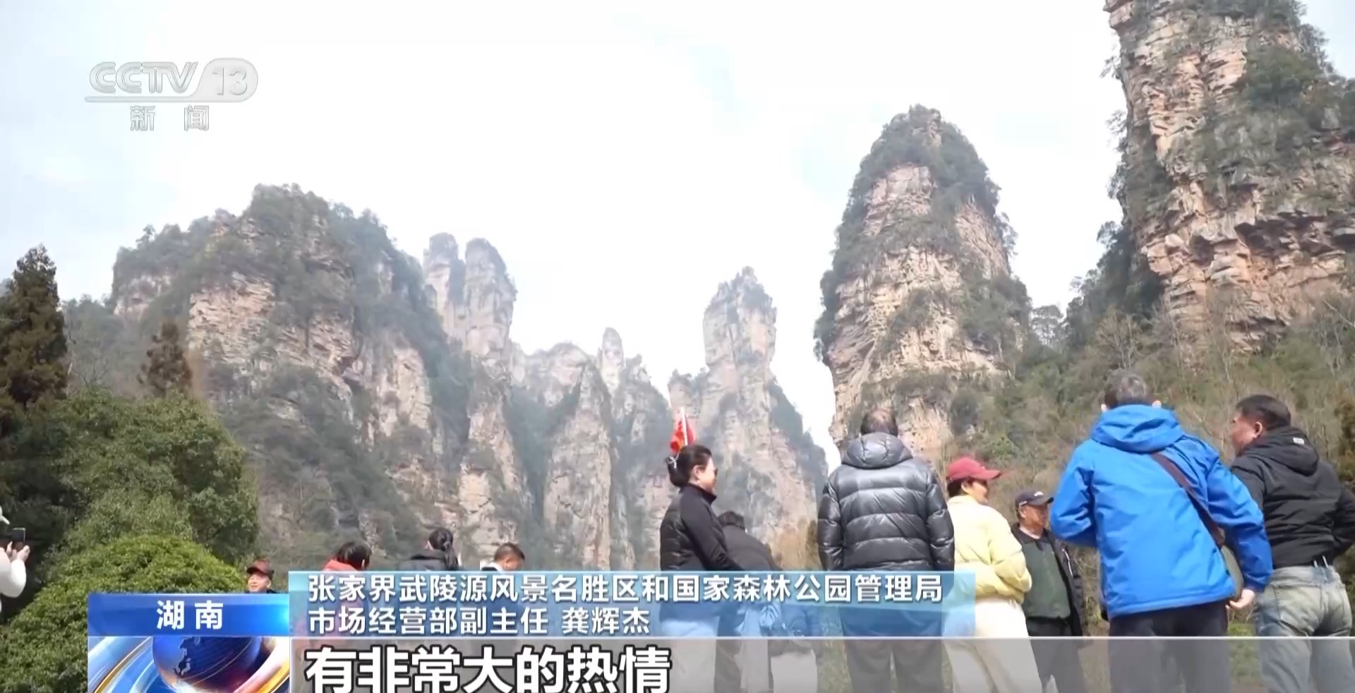 张家界武陵源风景名胜区和国家森林公园管理局市场经营部副主任 龚辉杰:很多游客对探寻打卡电影取景地有非常大的热情,这种热情能在短期内转化成很大流量的。我们尝试用科技赋能文旅,借助电影的热度,打造景点标签,给游客一个既熟悉又新鲜的游玩体验。