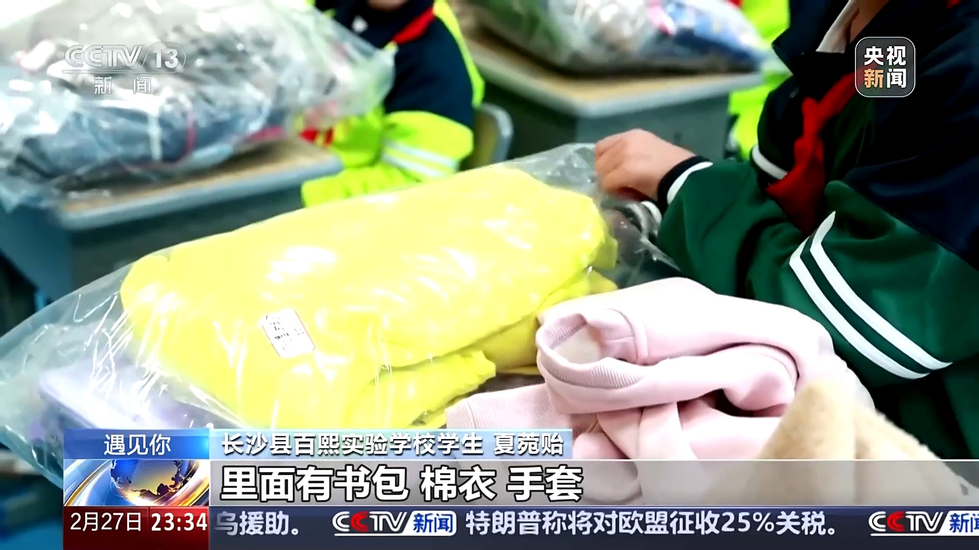 长沙县百熙实验学校学生 夏菀贻:我和妈妈给对接的好朋友仁增曲珍准备了一个大礼包,里面有书包、棉衣、手套,还额外准备了围巾。