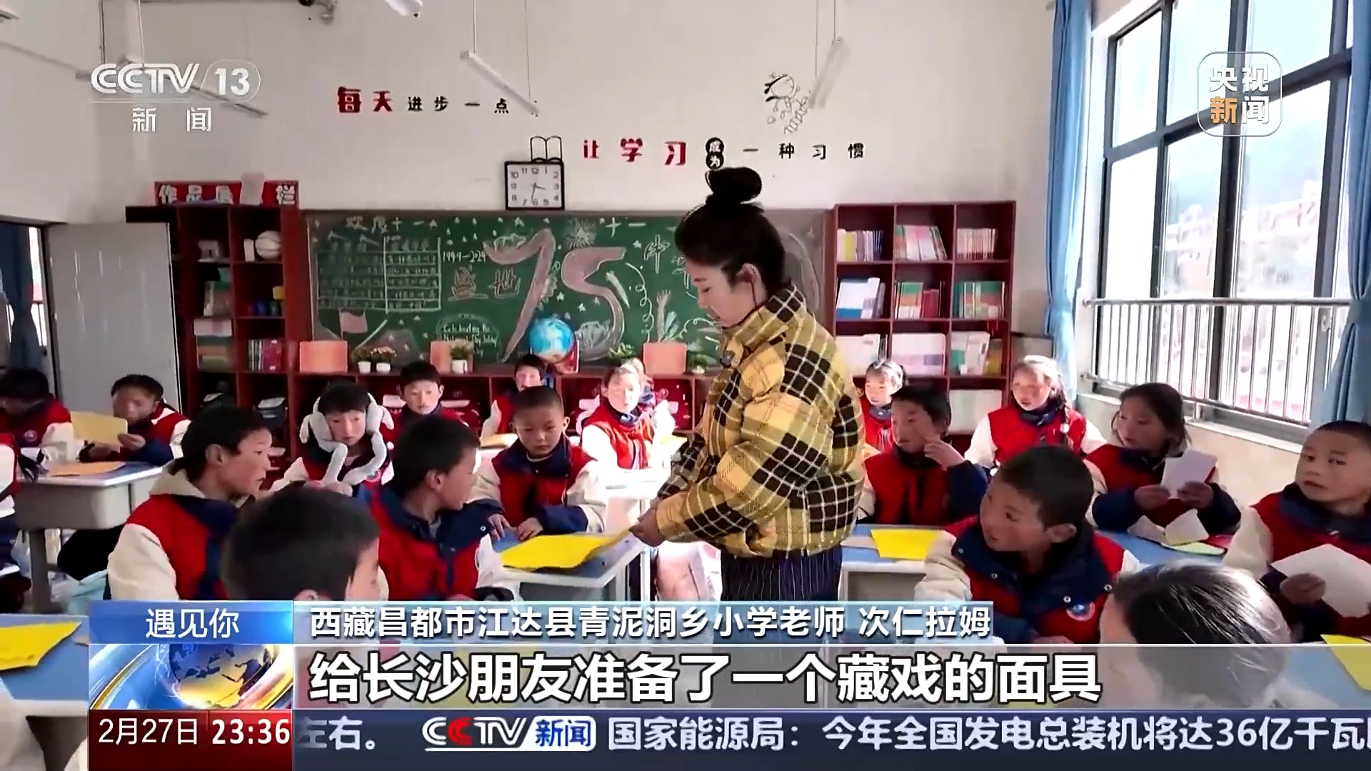 西藏昌都市江达县青泥洞乡小学老师 次仁拉姆:我们这位同学给长沙朋友准备了一个藏戏的面具,这个就很有特色,他自己画的。