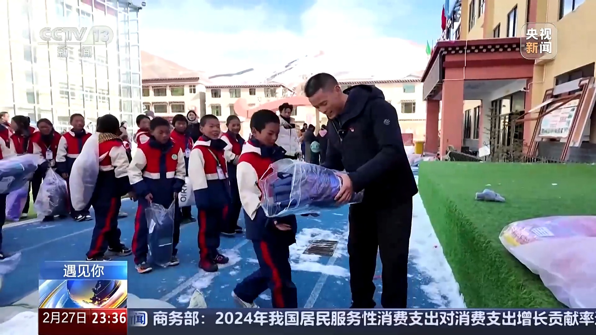 唐林把长沙同学们捐赠的爱心礼包一一送到结对的藏区孩子们的手上,还在现场让两地的小朋友视频连线。