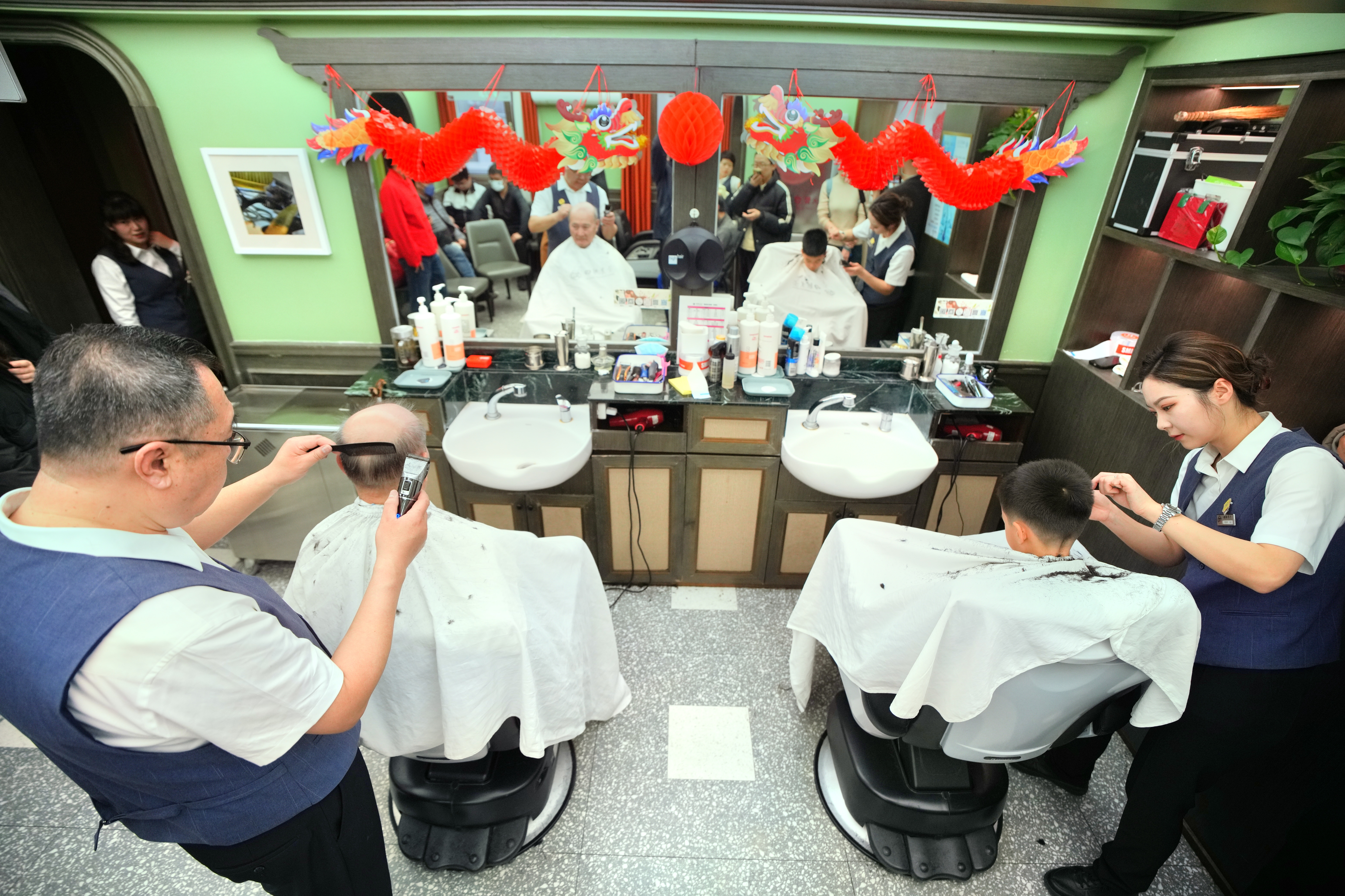3月1日是农历二月二,清晨七点四联美发王府井店提前开门迎客。不少北京市民早早前来理发。同时非遗沙龙拉开序幕,非遗传承人们共济一堂为小朋友分享非遗背后的故事。