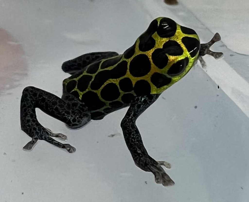 尽管从业十多年,蔡一村也是第一次见到箭毒蛙。“真的很漂亮,颜色很绚丽,但自然界中,越绚丽的东西就越可能藏有陷阱。”他继续回忆,眼前的这只箭毒蛙是成体蛙,仅有成人指甲盖大小,身体上有明显纹路。