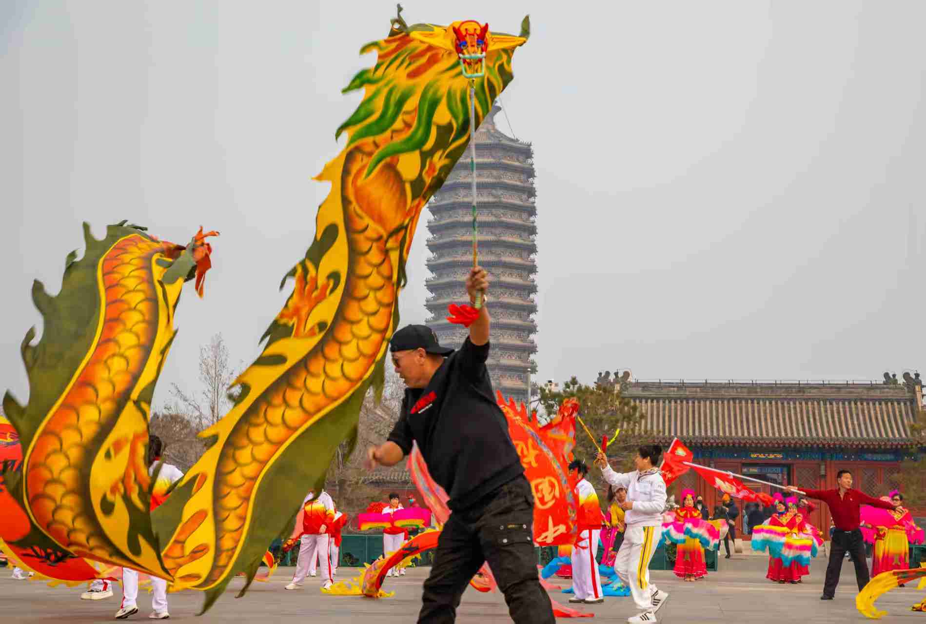 3月1日,大运河源头遗址公园“龙腾春晓,抬头见福”活动热闹开场。舞龙舞狮灵动矫健,汉服走秀风姿绰约,漆园龙鼓震撼人心。游客们吃龙须面,登龙山祈福,在欢声笑语中感受春日美好,祈愿新岁平安,福运绵长。