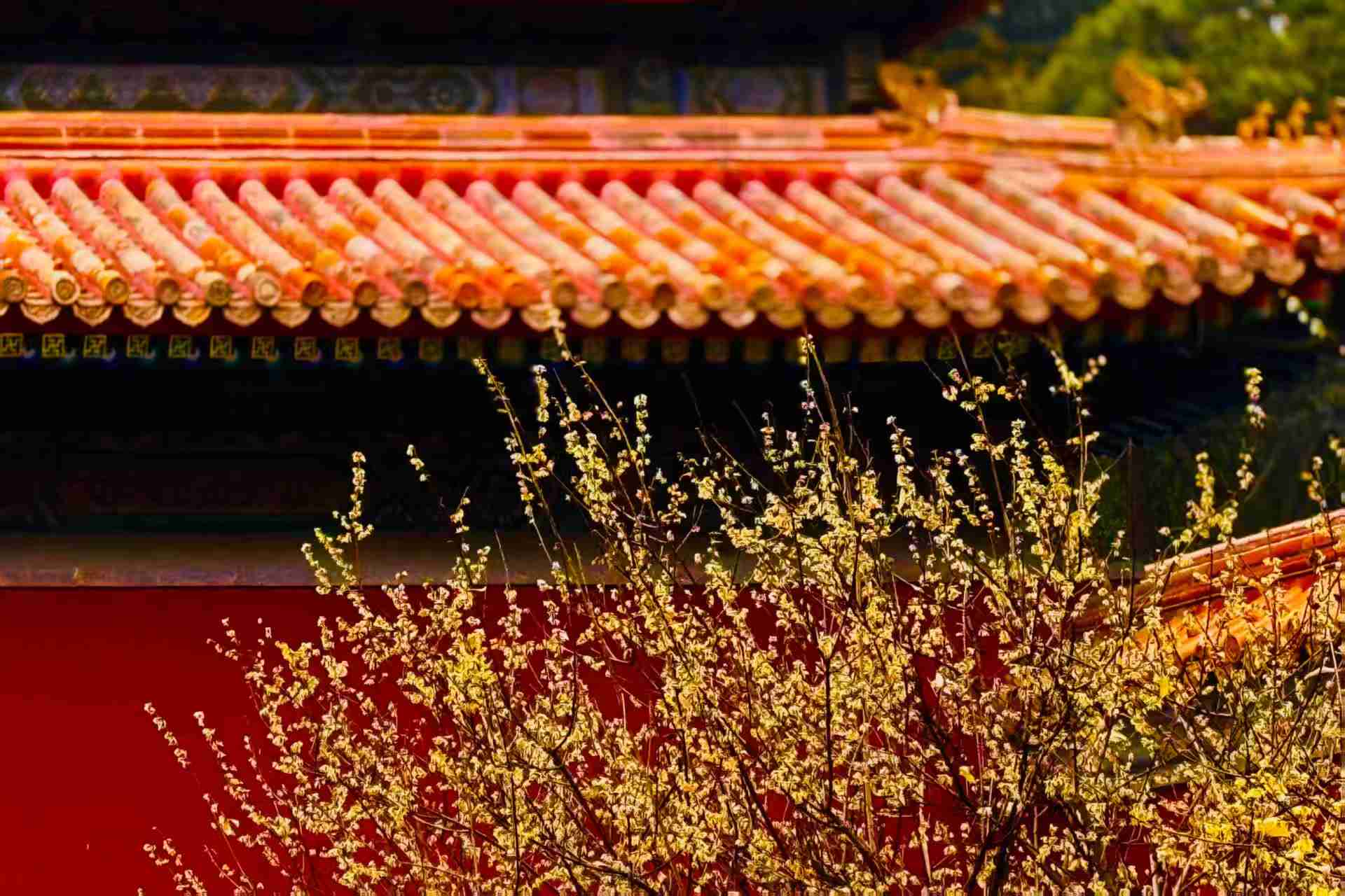 一场春雨滋润着京城,景山公园的腊梅格外清新宜人。金黄色的花朵点缀在红墙黄瓦之间,尽显优雅妩媚!