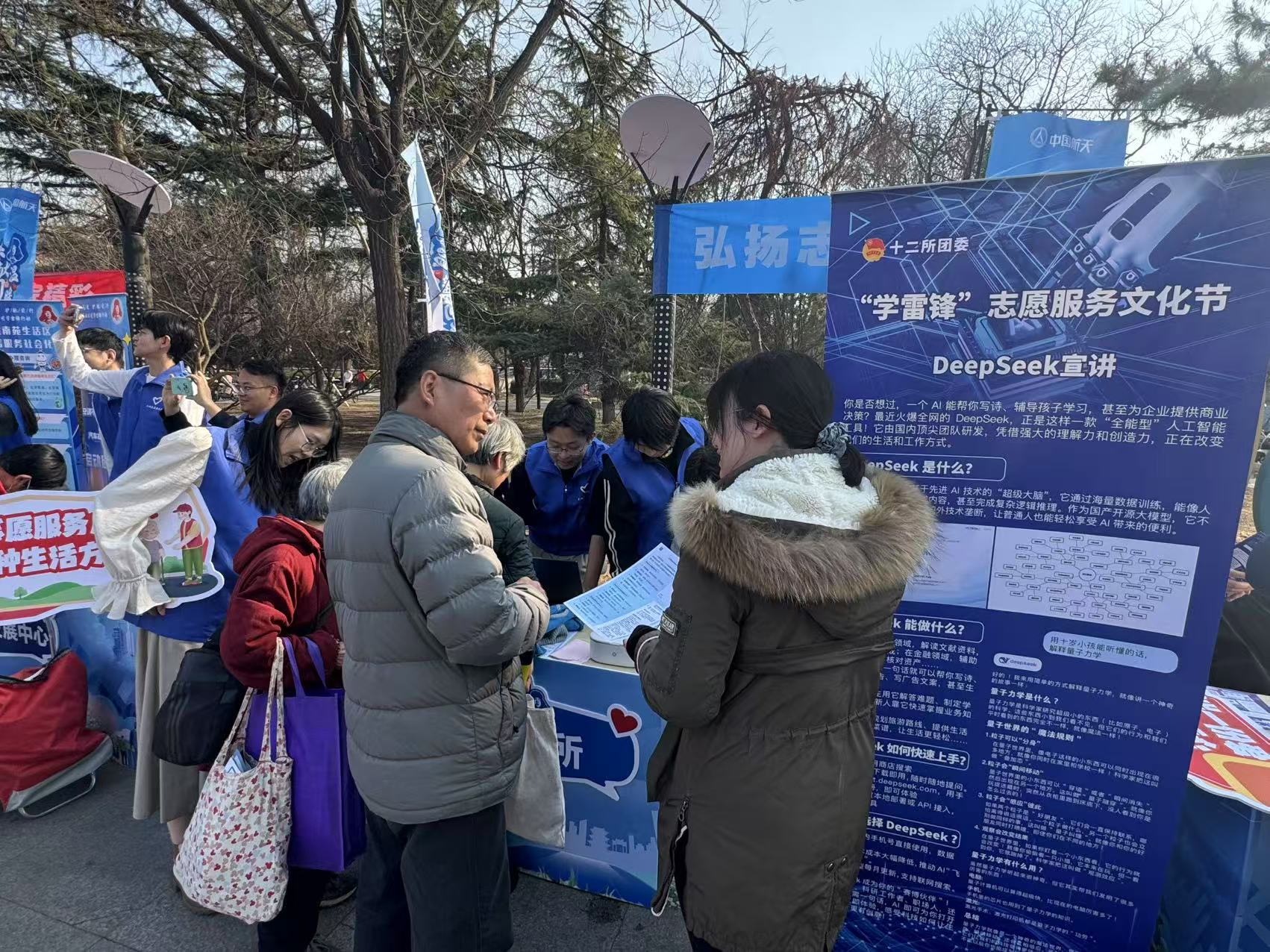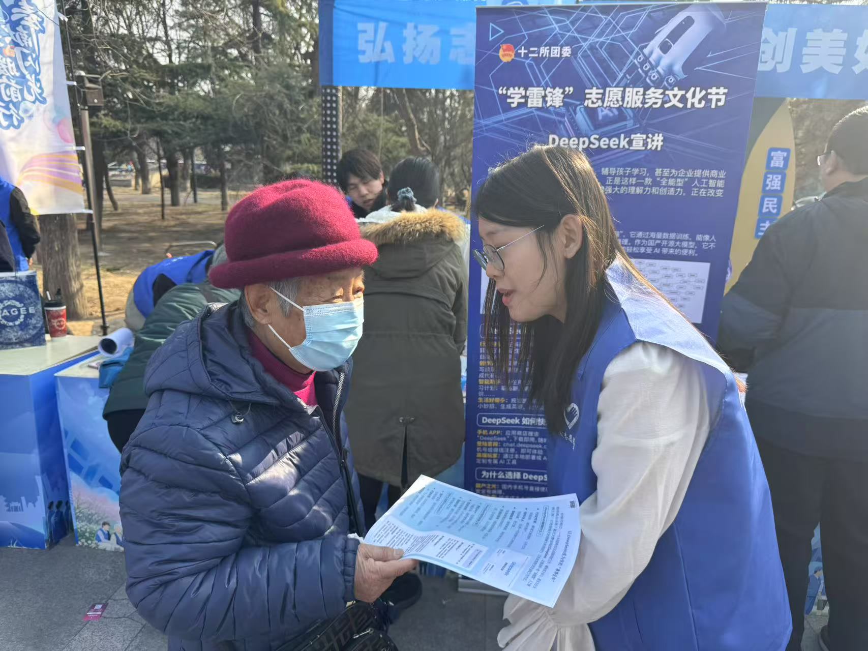 2月28日,在丰台区航天万源广场举办的第二届学雷锋志愿服务文化节上,DeepSeek的讲解服务意外地受到了不少居民的欢迎,前来咨询的居民中甚至不乏老人。