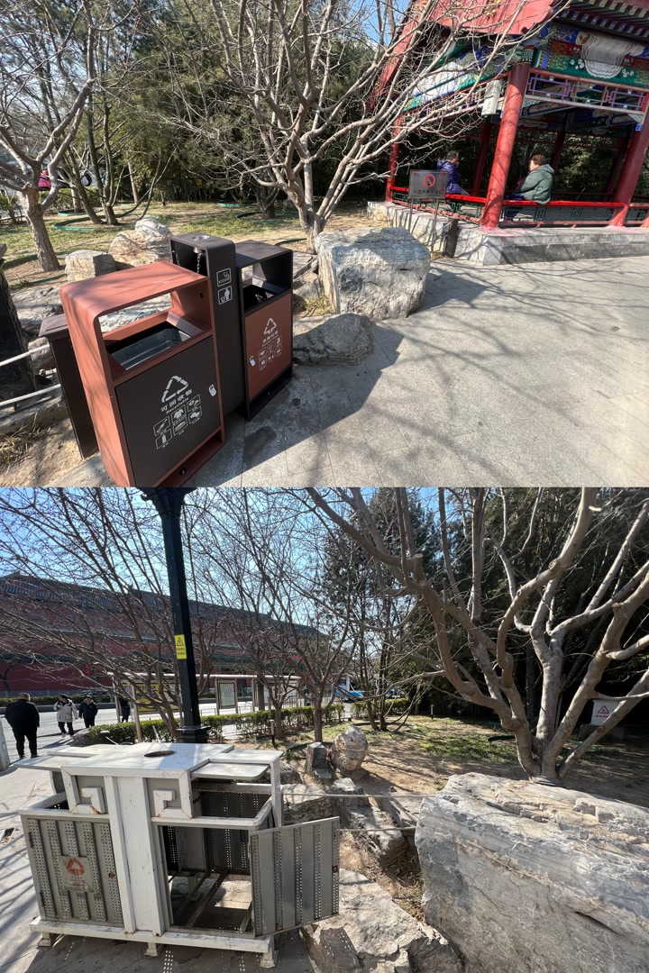 国家图书馆地铁站B口旁的微花园,曾因缺少垃圾桶,导致座椅背后的草坪上散落快餐盒、食品包装盒、烟盒等诸多杂物,让园景大打折扣。2月28日,记者刚一走近此处微花园,便在路边的显眼位置看到了一组新安装的分类垃圾桶,园内投放垃圾不便的问题得以解决。龙头井微公园内此前缺失的“可回收”垃圾桶也已被补齐,垃圾桶内还贴心地套上了垃圾袋。