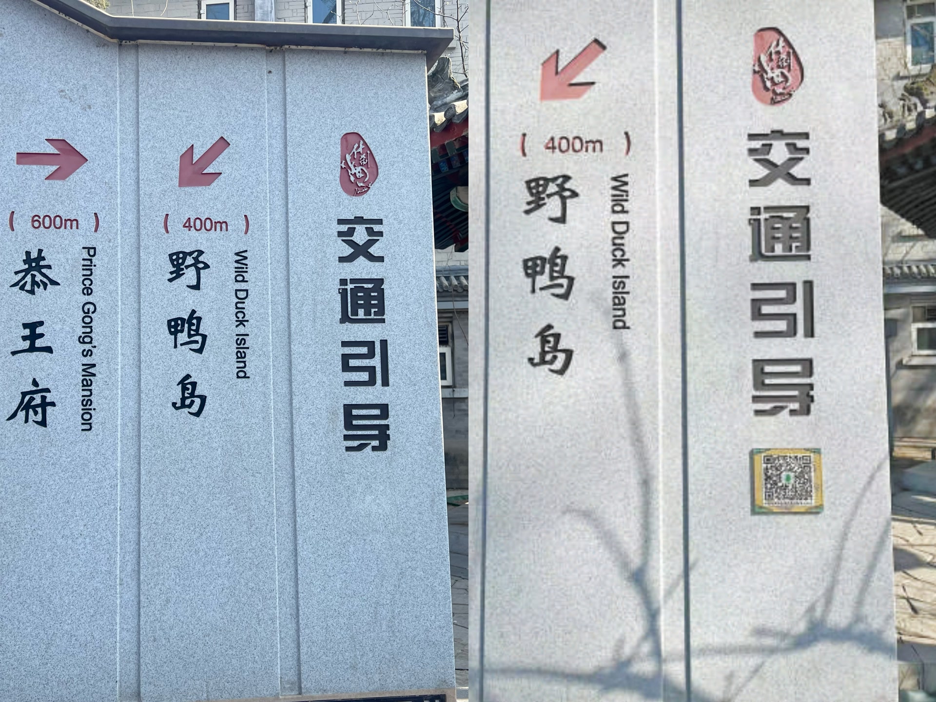 柳荫街北口设有仿古小亭的微花园旁,曾设置了贴有引导二维码的交通引导牌,只不过,二维码所链接的微信公号已被注销无法关注。记者在回访时看到,“过期”的二维码已从交通引导牌上被拆除。