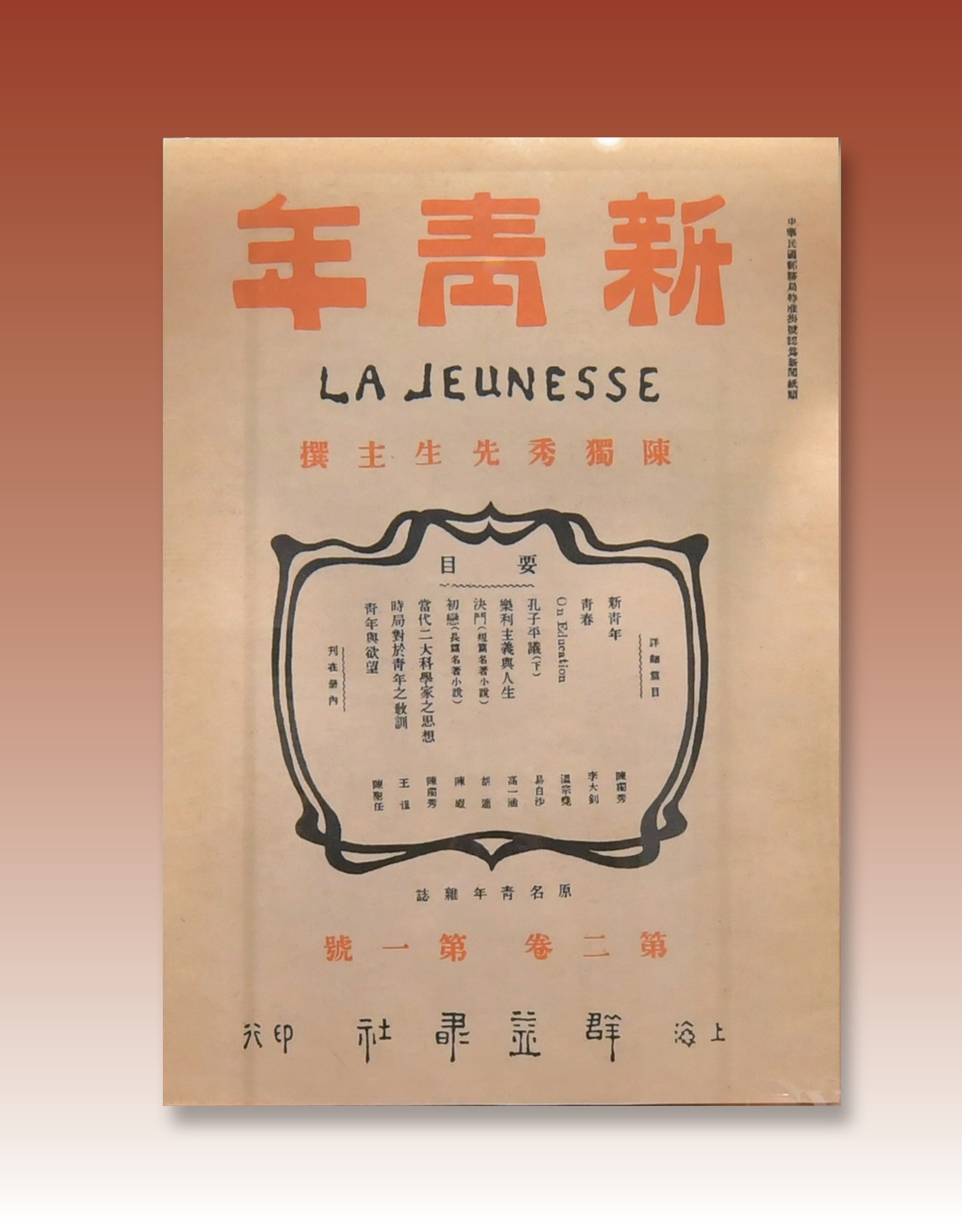 1916年3月3日,群益书社收到上海青年会的来信,信中表示,《青年杂志》与《上海青年》名字雷同,应及早改名以免出现冒名。陈独秀决定将《青年杂志》更名为《新青年》。图为更名后出版的首期《新青年》(第2卷第1号)。