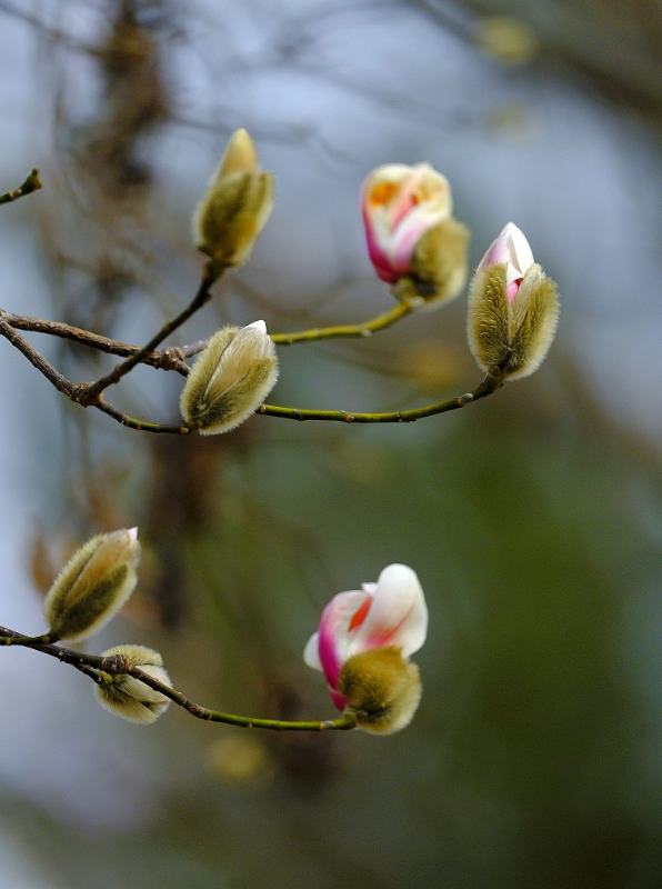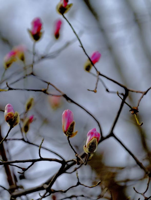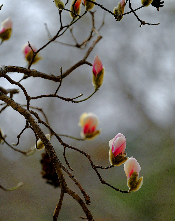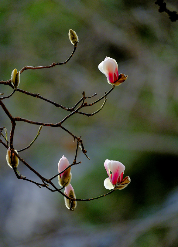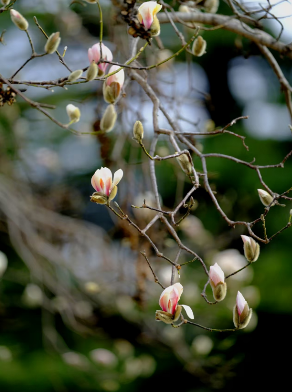 植物园的玉兰花和梅花绽放,让人沉醉在春色之中