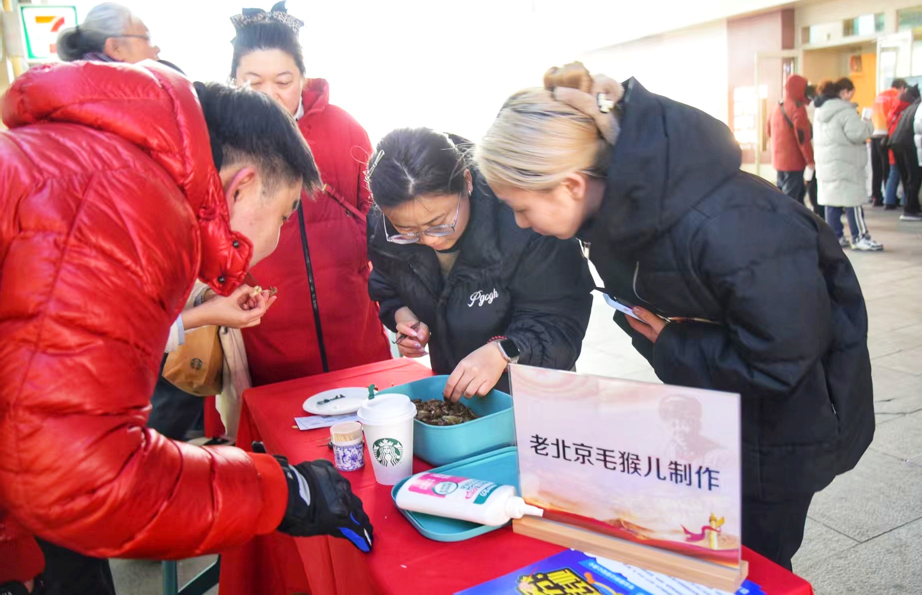 当天,公益一条街共设置40余个公益摊位,涵盖了丰富多样的志愿服务项目。现场不仅有文明养犬宣传、普及口腔卫生健康知识等宣传,还有福字拓印非遗体验、老北京毛猴儿展示、京彩瓷非遗展示等摊位,让居民们近距离感受传统文化的魅力,体验非遗技艺的独特韵味。