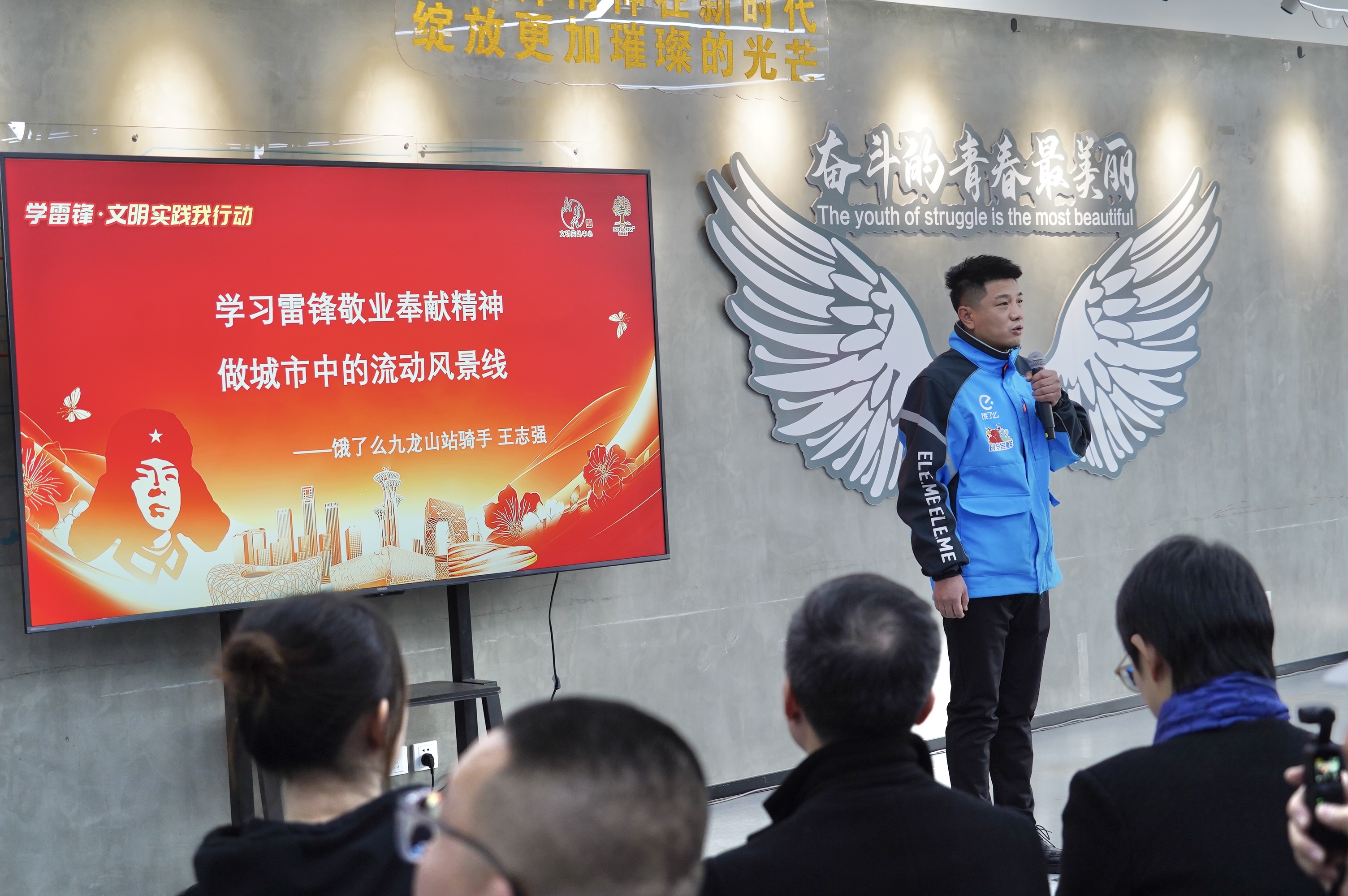 活动中,四位来自不同行业、不同身份的文明实践志愿者代表、优秀榜样以及新就业群体代表,围绕“敬业精神”“助人为乐”“邻里互助”“锐意进取”“勤俭节约”等主题分享了他们的学雷锋故事。