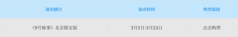 🔵在文章评论区写下你的感受,我们将随机抽取1名粉丝,送出2张《9号秘事》北京限定版观演门票(座位随机)