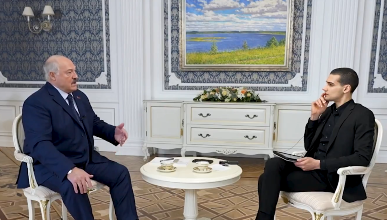 白俄罗斯总统卢卡申科接受知名自媒体人马里奥·纳法尔采访。 图源:马里奥·纳法尔X账号发布视频截图