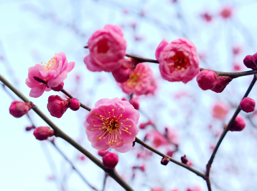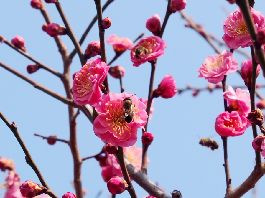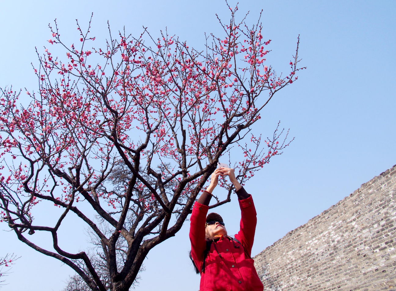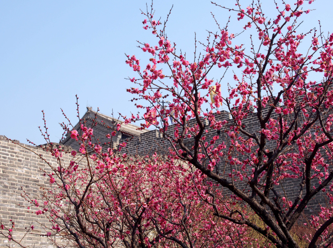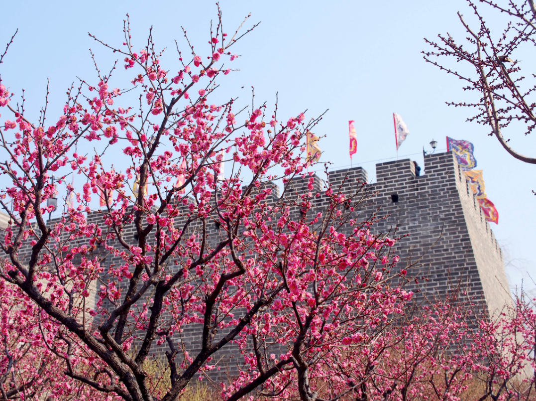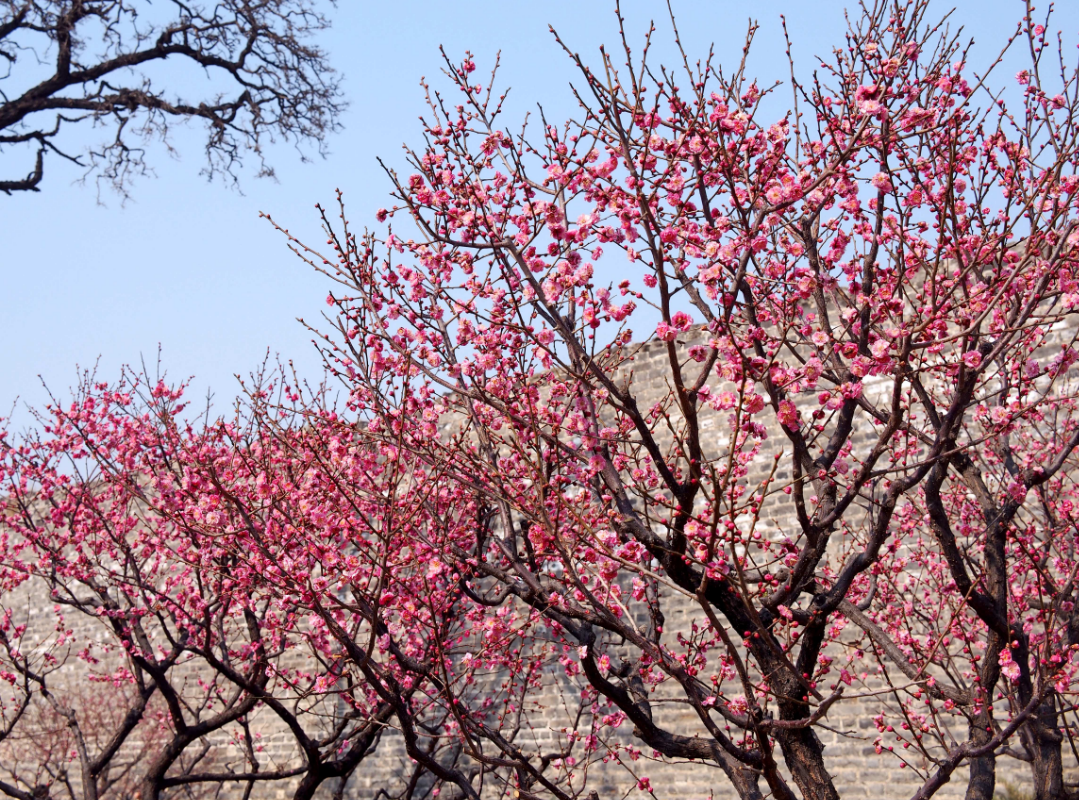 天蓝花美!明城墙遗址公园迎来梅花盛开
