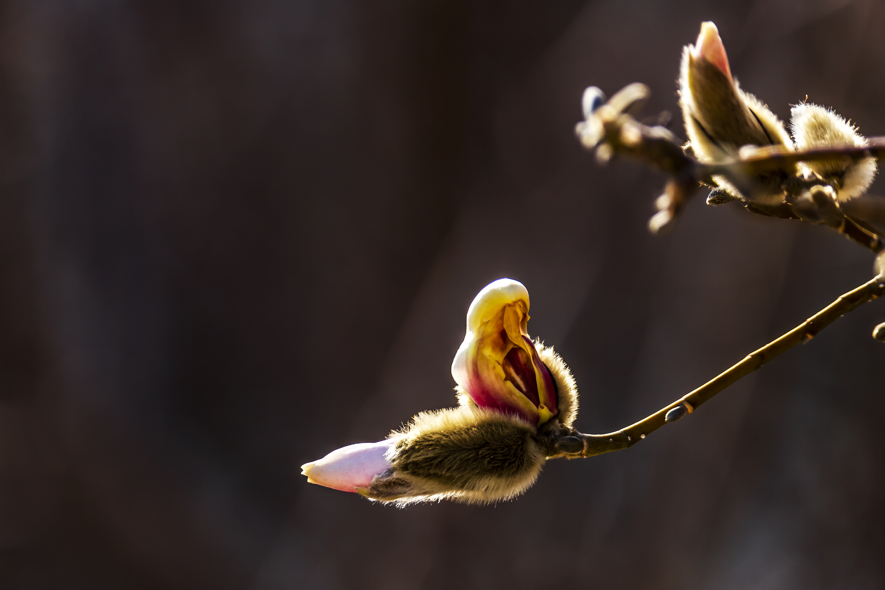 运河岸边上的玉兰花,正书写着春天的灿烂。树枝上,毛茸茸的花苞微微张开,远看仿佛一只收拢着翅膀的小鸟栖息在枝头,悄悄探看世界。几朵绽开的玉兰,紫的梦幻、白的纯净,高低错落,与运河相依相衬,为往来行人铺就一场盛大的视觉盛宴。