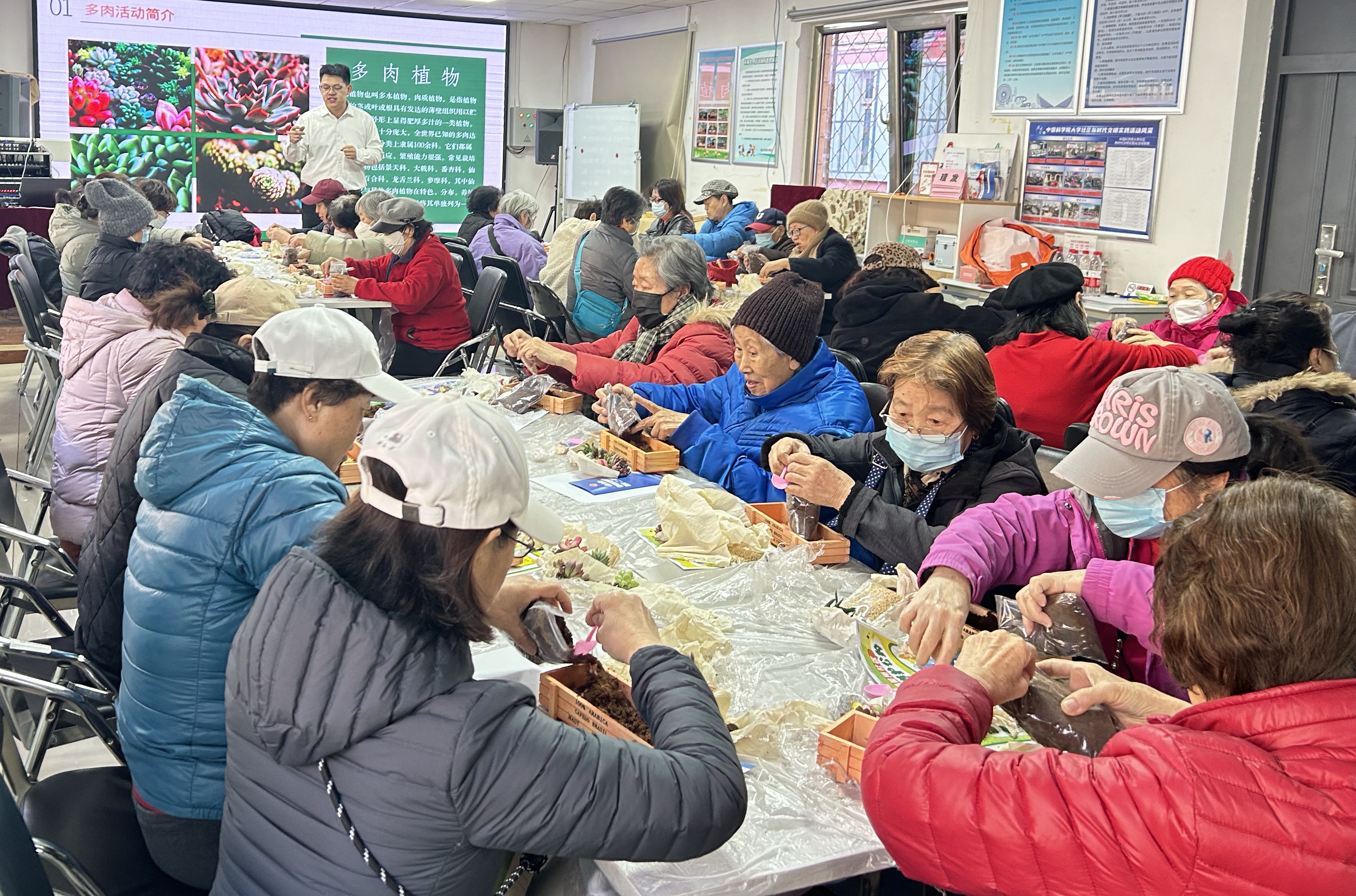 3月7日,北京石景山区老山街道高能所社区开展庆祝“三八”国际妇女节活动。40名社区女性居民代表开展“萌肉绿韵,指尖绽放”多肉造景活动,提高绿色环保意识,普及生态文明理念,度过一个绿色、低碳、环保的节日。