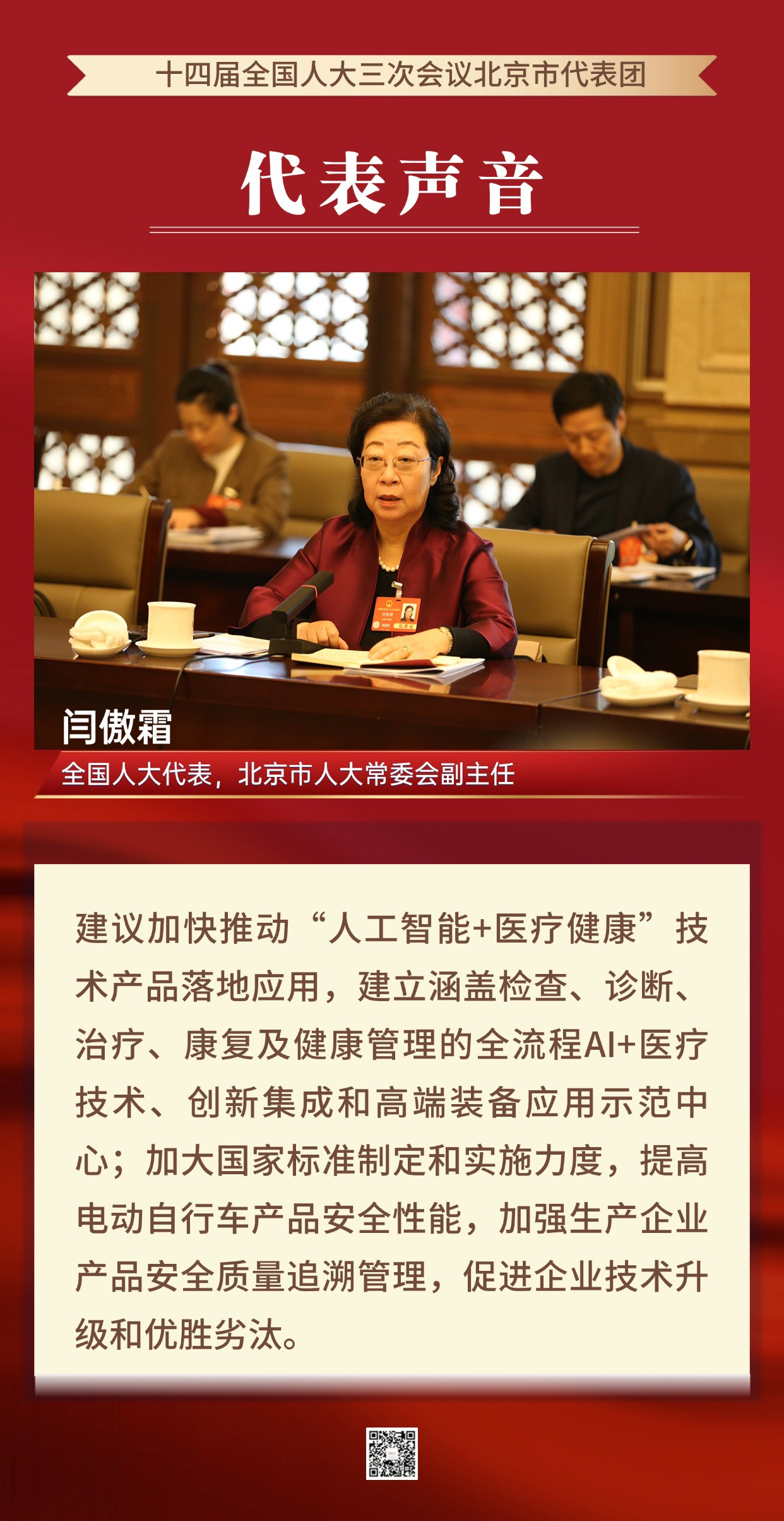 【聚焦全国两会】代表声音|闫傲霜:推动“人工智能+医疗健康”技术产品落地应用