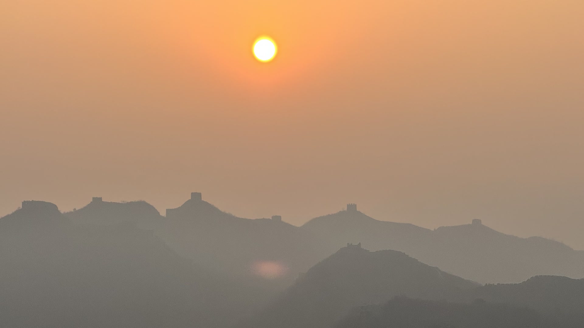 3月8日清晨,河北省承德市滦平县金山岭长城,日出映照,氤氲的山岚、长城,相互交融辉映,景色壮美,犹如水墨画一般美丽迷人。