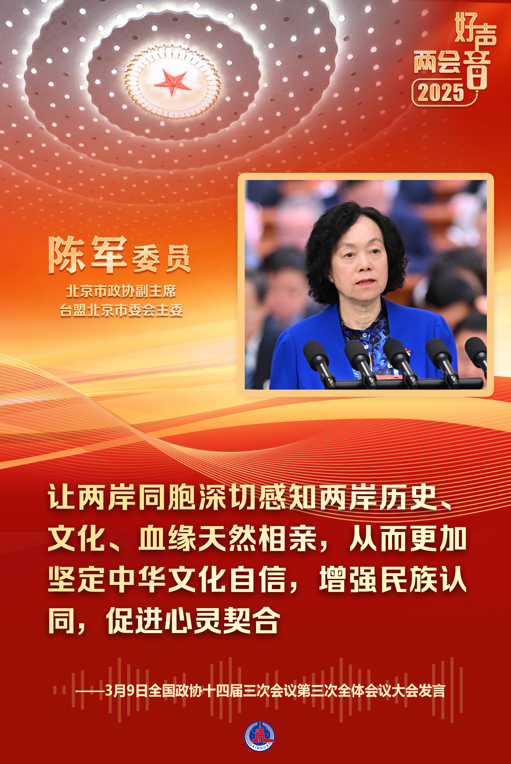 3月9日上午,全国政协十四届三次会议举行第三次全体会议。14位政协委员作大会发言。陈军委员代表台盟中央发言。