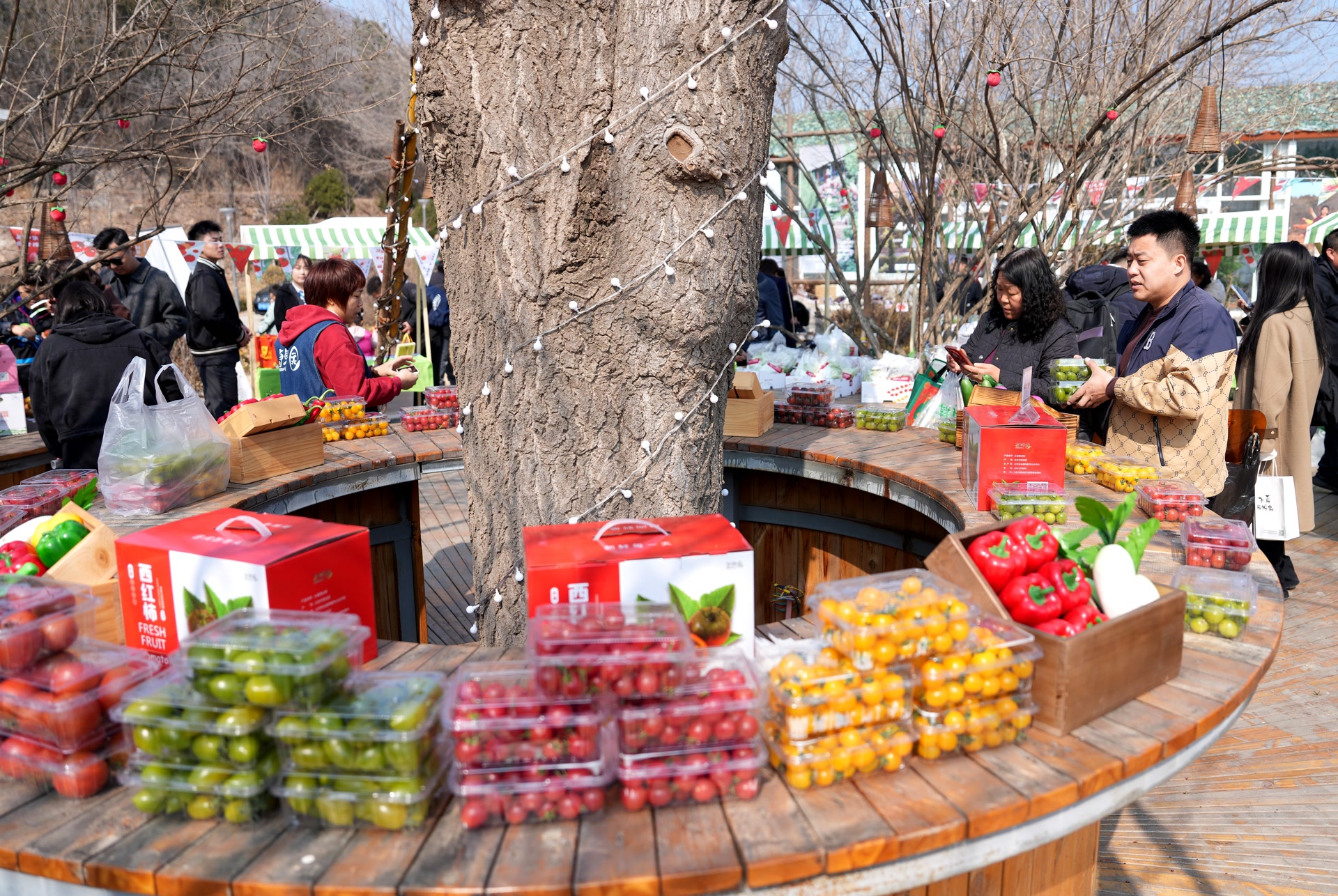 在密云特色农产品市集上,本地30余家农业企业(合作社)带来了琳琅满目的密云特色农产品,吸引市民品尝购买。为进一步丰富农事体验,活动当天还邀请市民到极星农业园区进行参观。