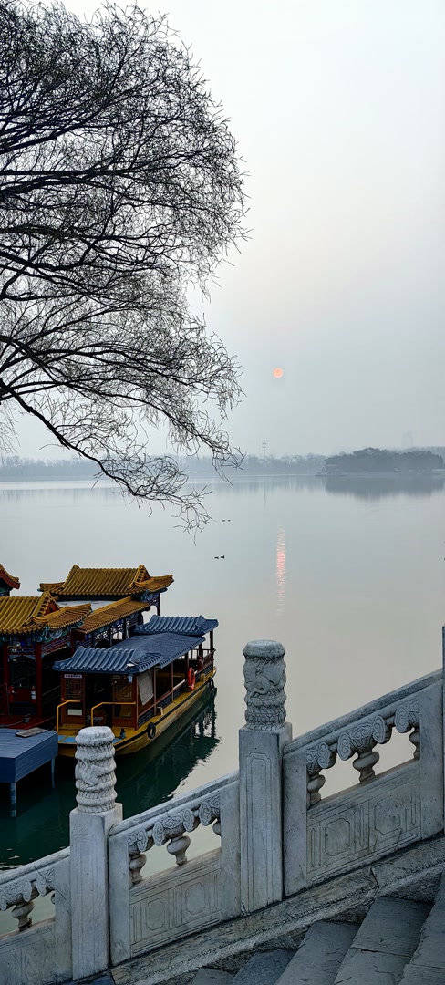 安静祥和!北京颐和园在薄雾中迎来日出