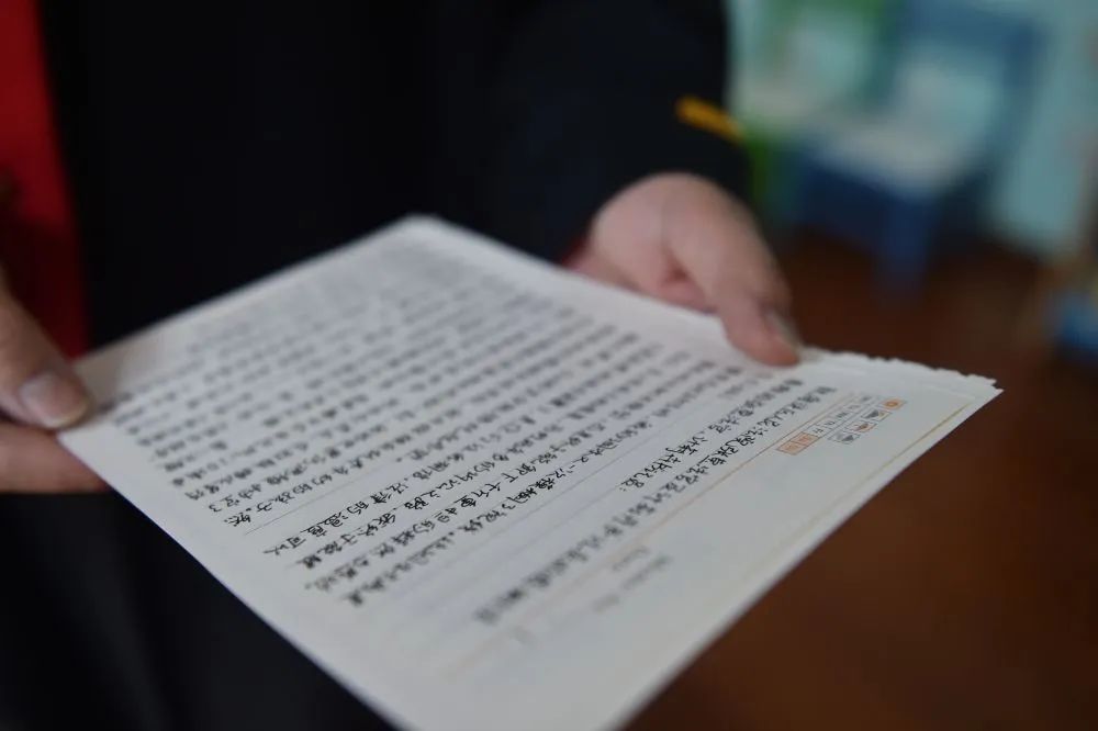 3月4日,在北京市海淀区人民法院温泉人民法庭(少年法庭),法官张莹收到当事人写给她的感谢信。